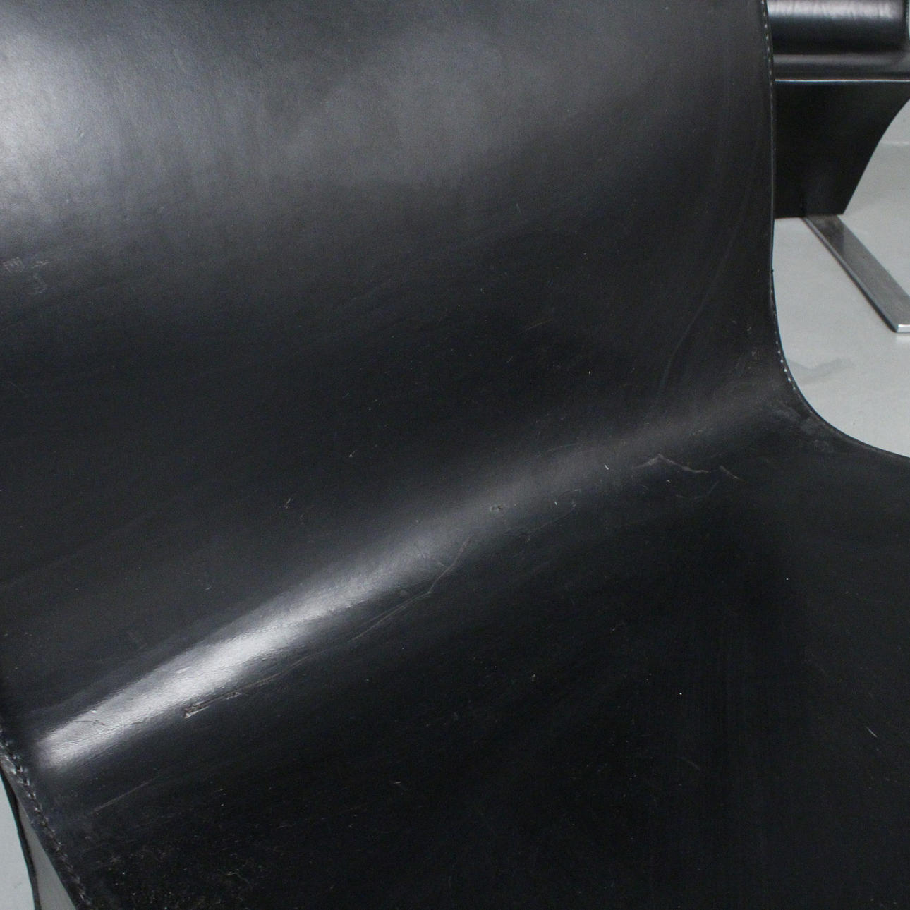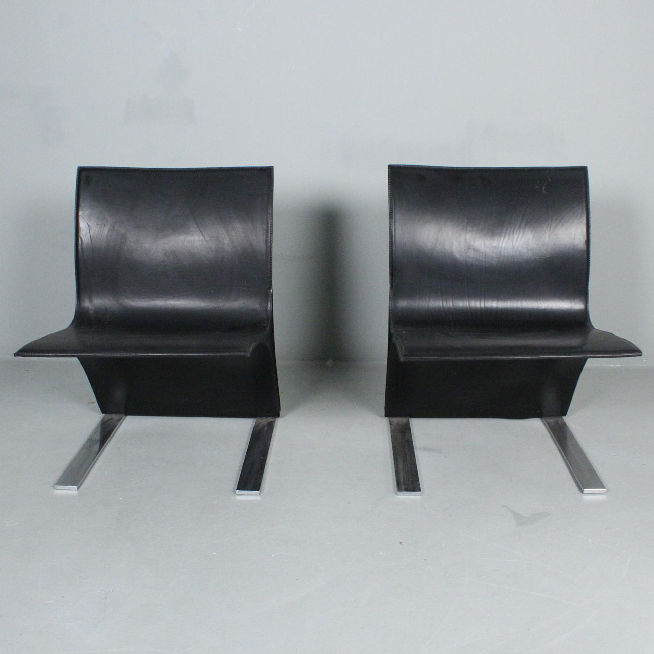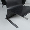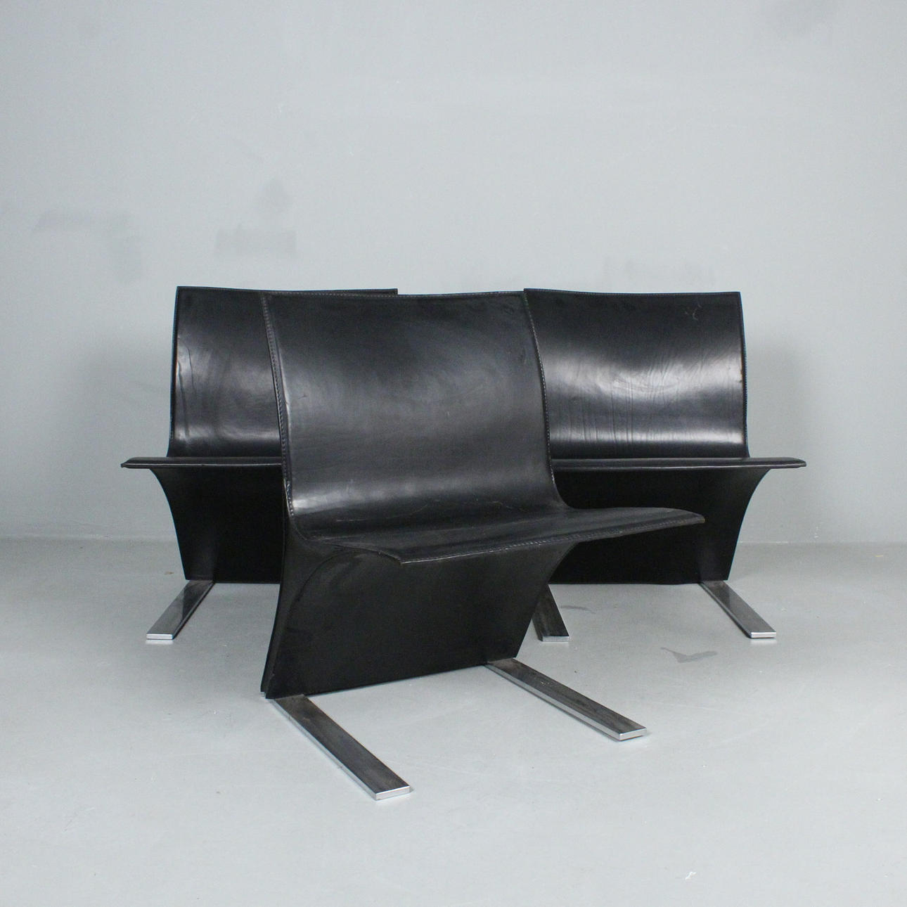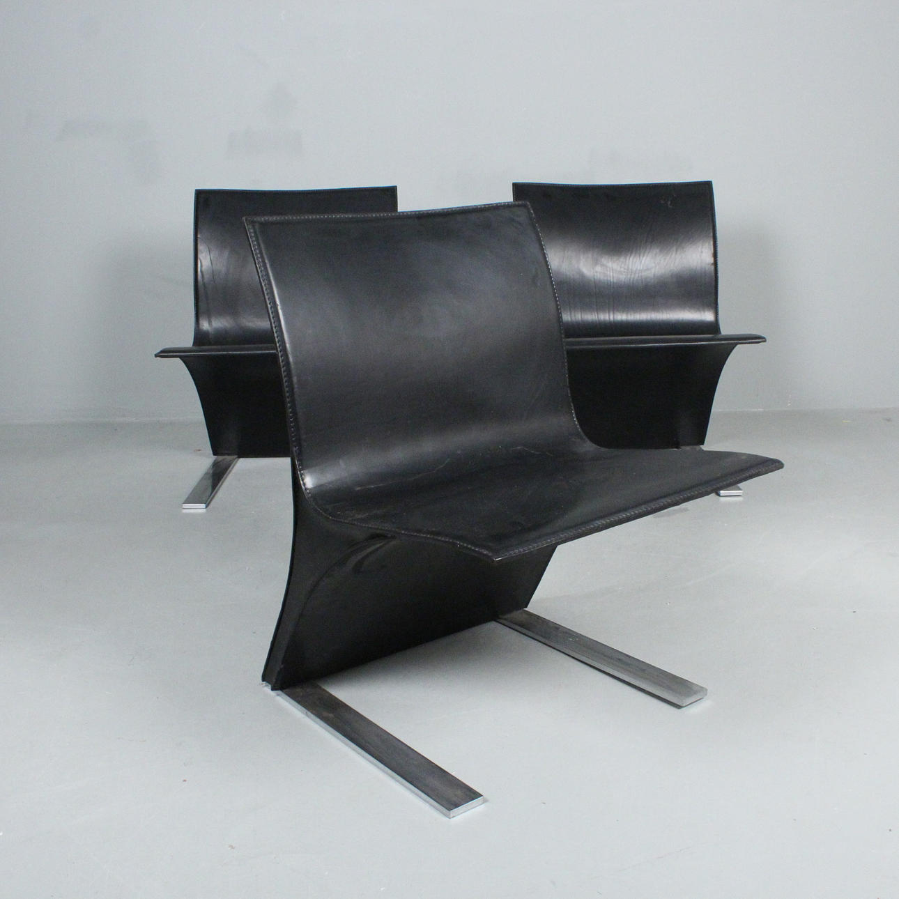 Conjunto de tres sillones de metal macizo y revestidos de piel.
