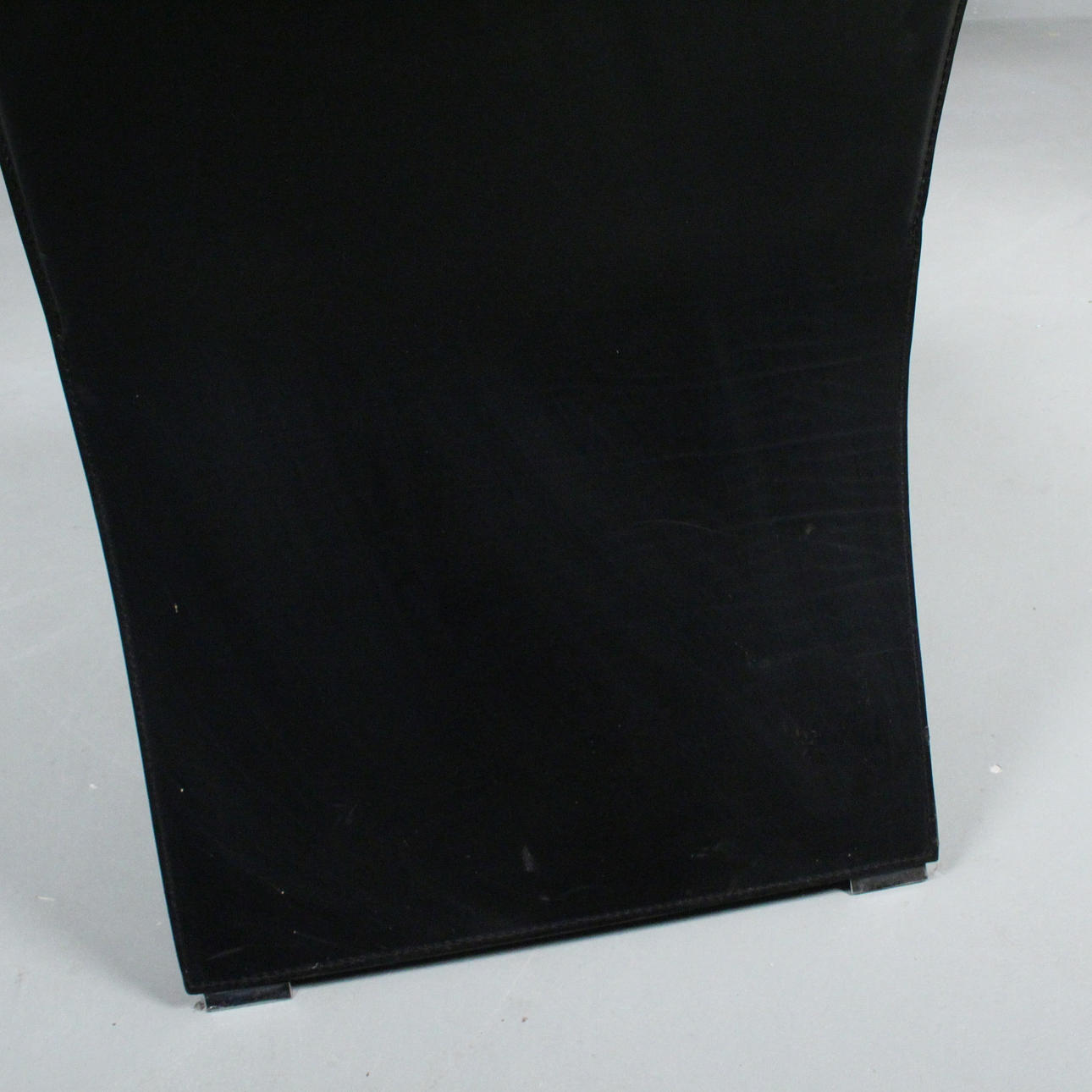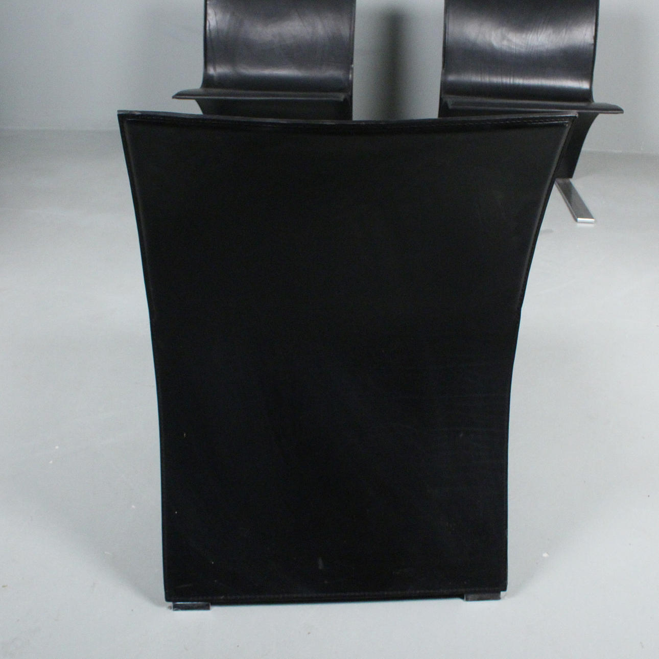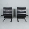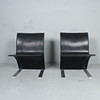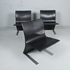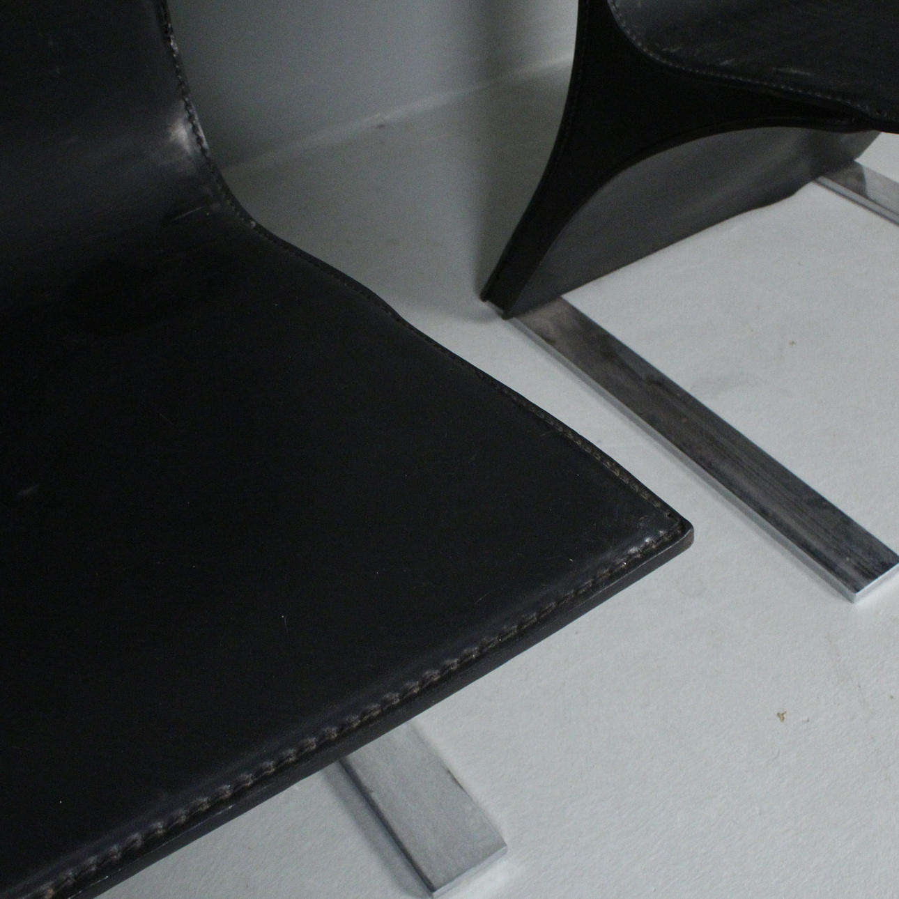 Conjunto de tres sillones de metal macizo y revestidos de piel.