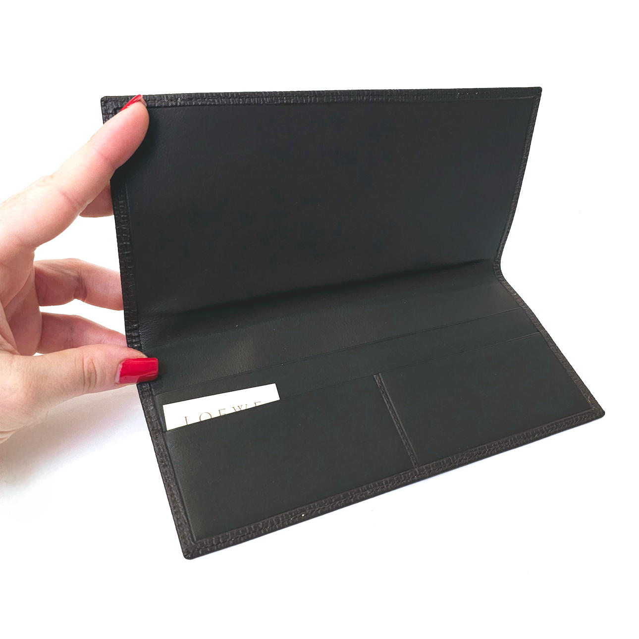 LOEWE. TARJETERO EN PIEL MARRÓN OSCURO.