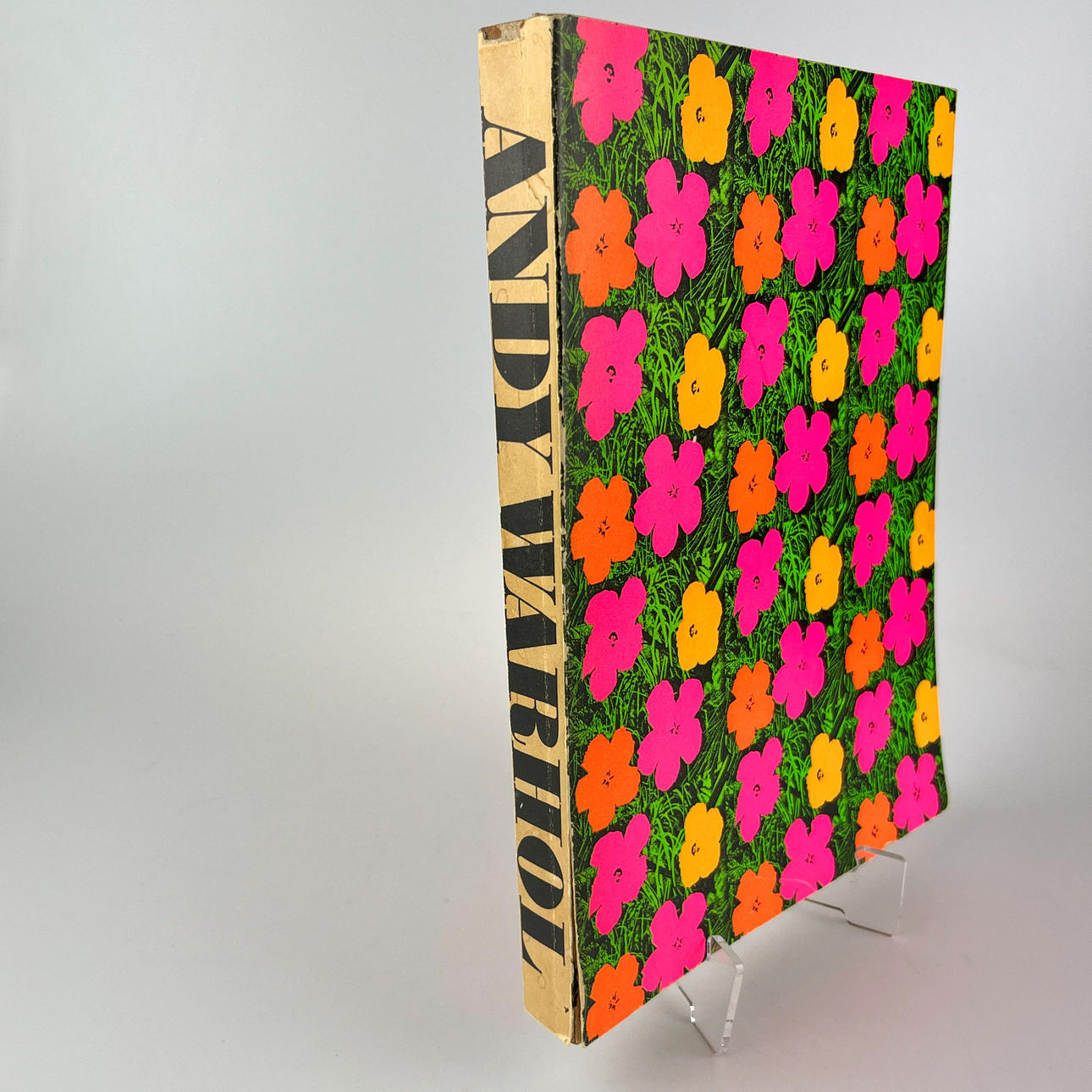 Una copia del famoso catálogo de Estocolmo de la primera edición publicada junto con la exposición de Andy Warhol en el Moderna Museet de Estocolmo entre febrero y marzo de 1968. Cuarta tapa dura con colorido flower power - portada. A menudo se le llama catálogo de flower power debido a la portada. No está paginado, pero contiene más de 600 fotografías en blanco y negro y también se considera un álbum de fotos en los círculos de coleccionistas. Los editores fueron Kasper König, Olle Granath y Pontus Hultén en el Moderna Museet de Estocolmo.