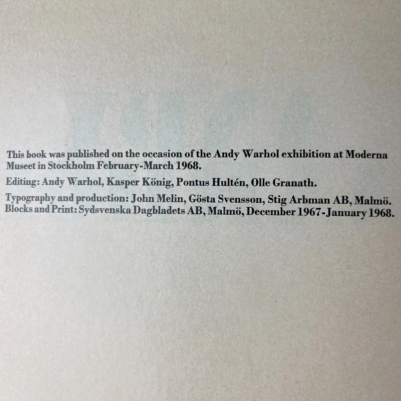 Publicado en conjunto con la exposición de Andy Warhol en el Museo Moderno en febrero-marzo de 1968.