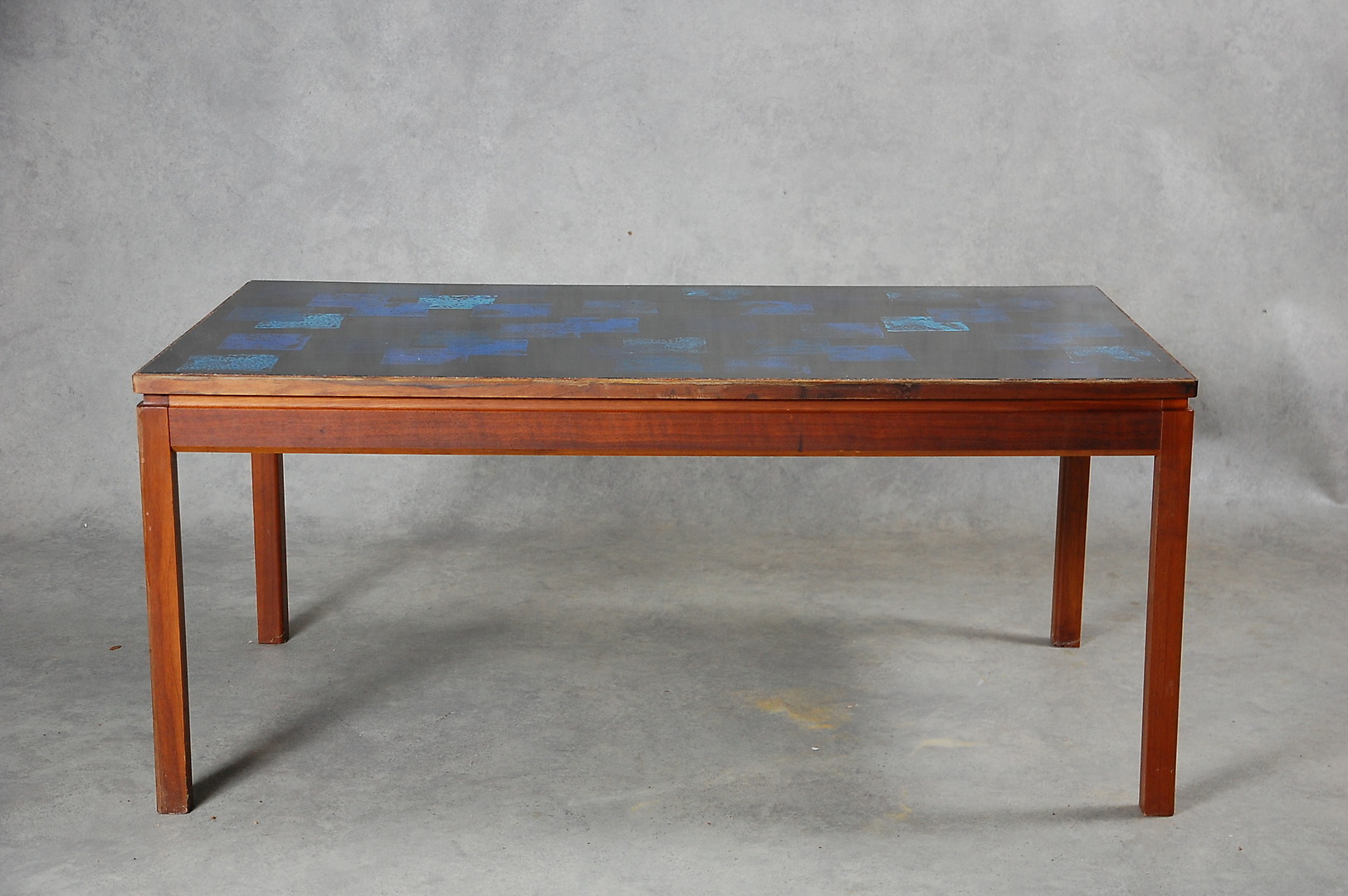 332271. YNGVAR SANDSTRÖM. mesa, con tapa en esmalte de Algot Törneman.