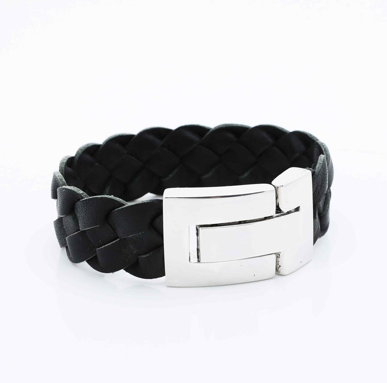 3323660. ESPRIT. pulsera, piel negra trenzada, cierre ajustable.