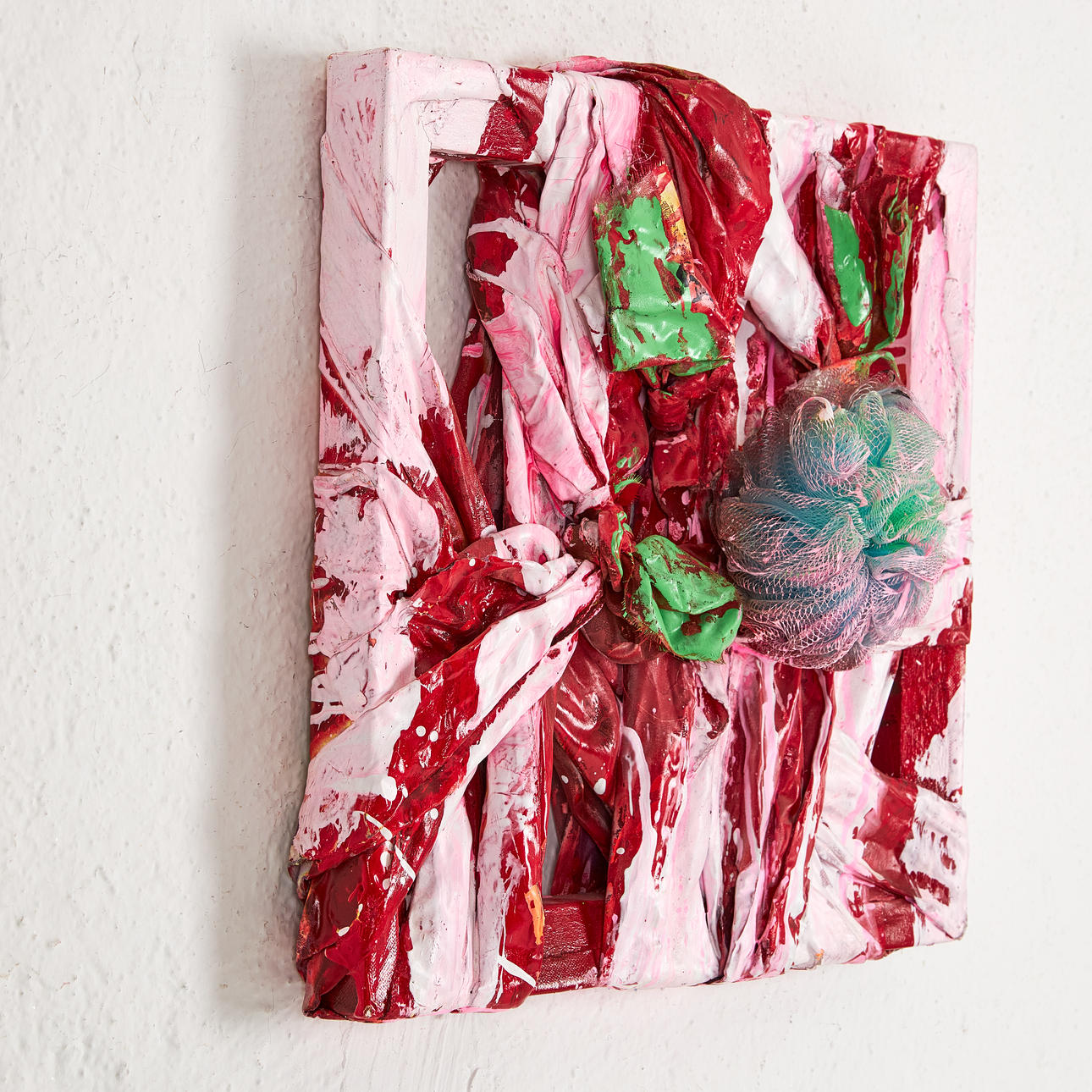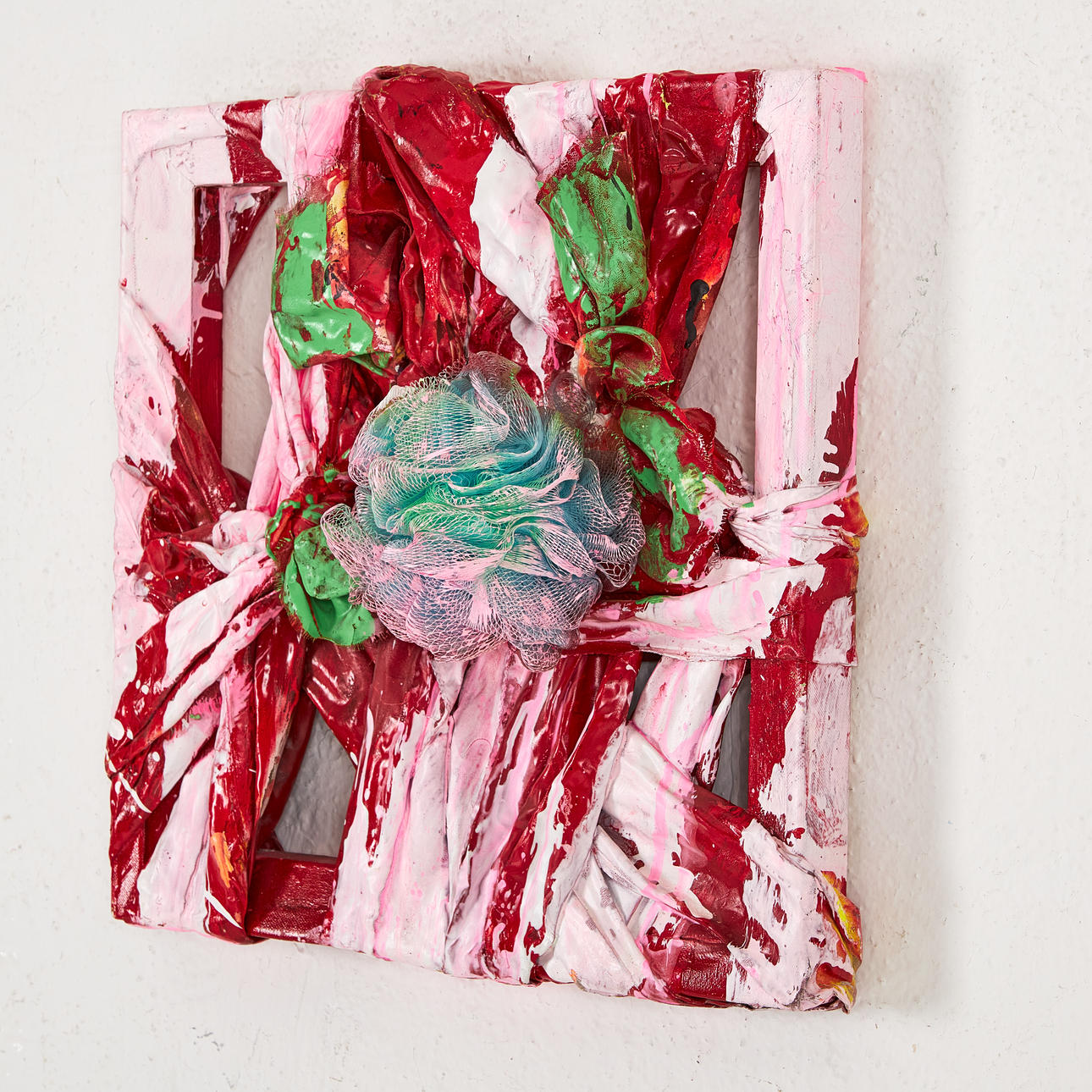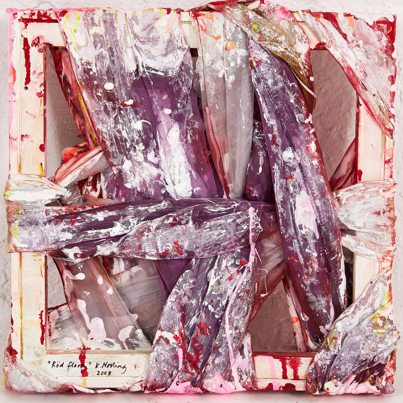 Técnica mixta, marco tensor. Aproximadamente 40 x 40 cm. Firmado por Katarina Norling y fechado en 2008 en el reverso.