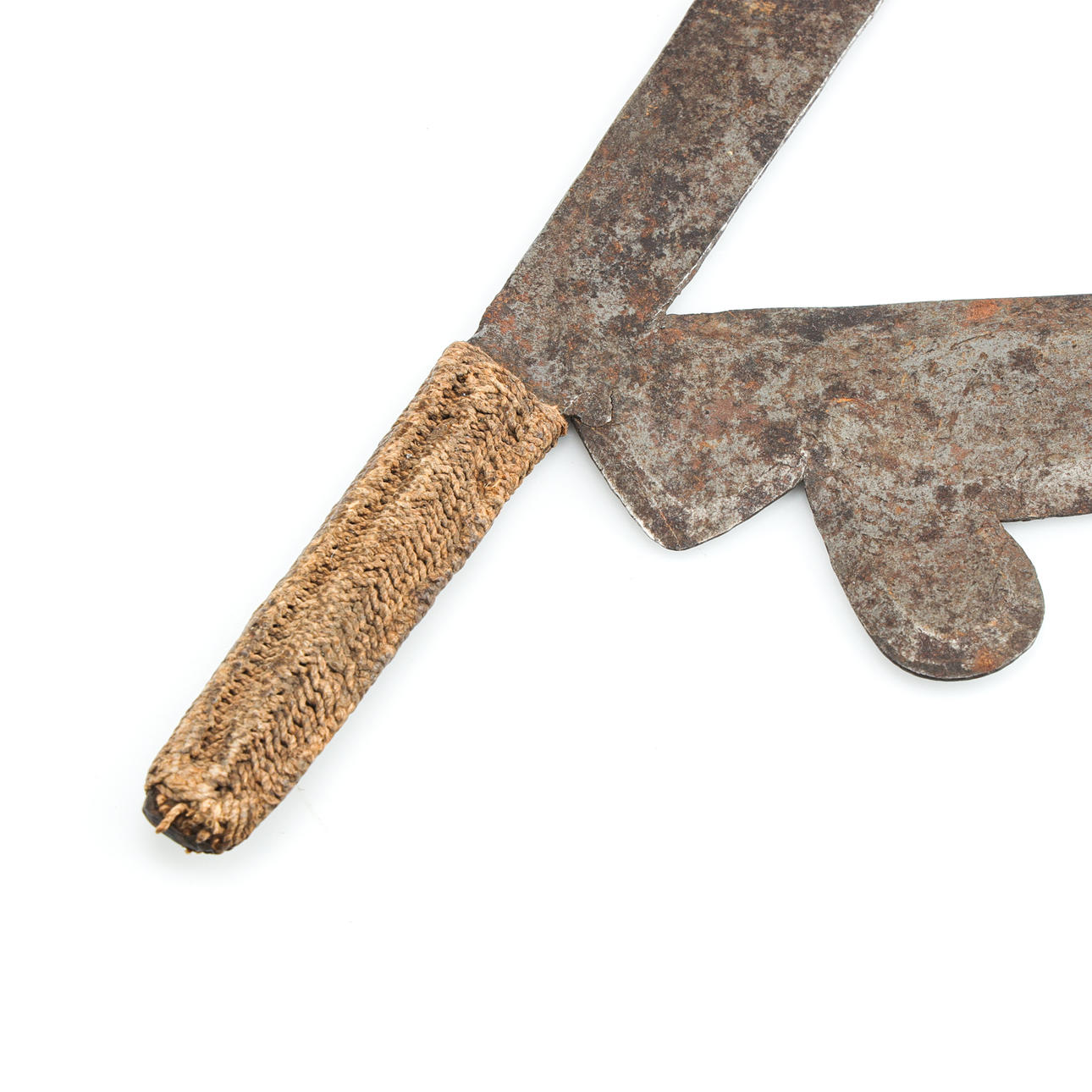 Forjado en hierro, asas revestidas con alambre trenzado. L unos 45 cm.