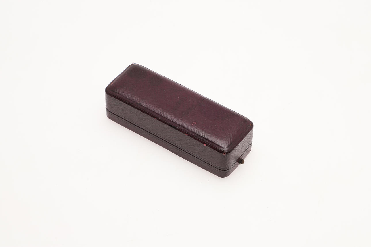 diamante de talla antigua engastado en garras de aproximadamente 0,1 quilates, pin estampado 15, 5 cm de largo, con funda. 1.7 gramos.