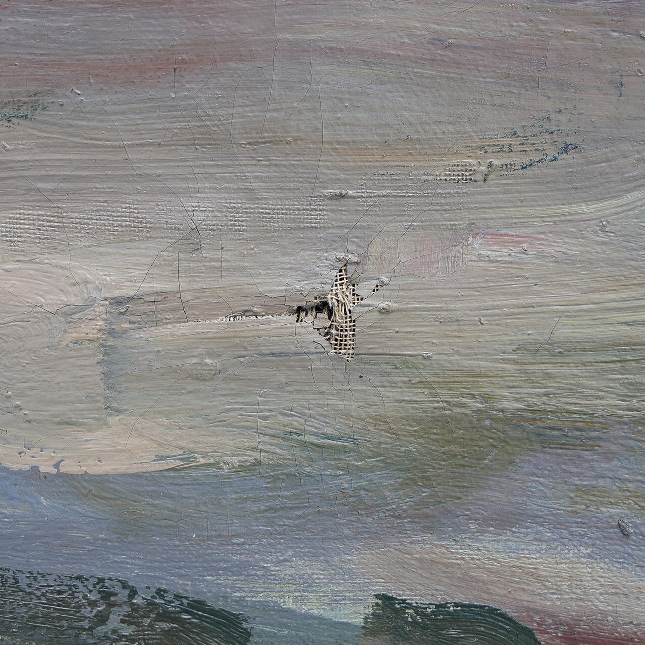 Lienzo con dos agujeros en la parte superior. Crepitaciones.