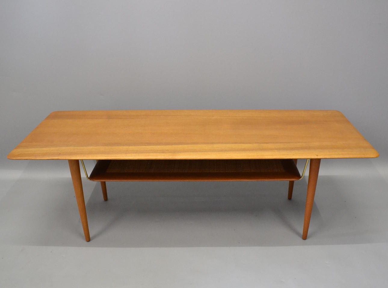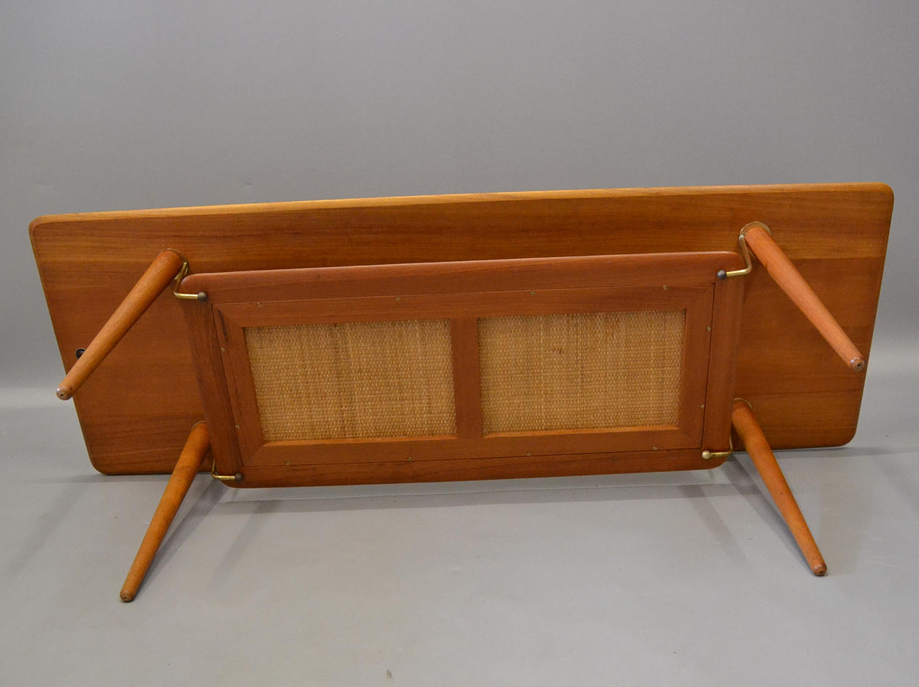 Teca maciza con estante de mimbre y herrajes de latón. Proyecto de 1956.
