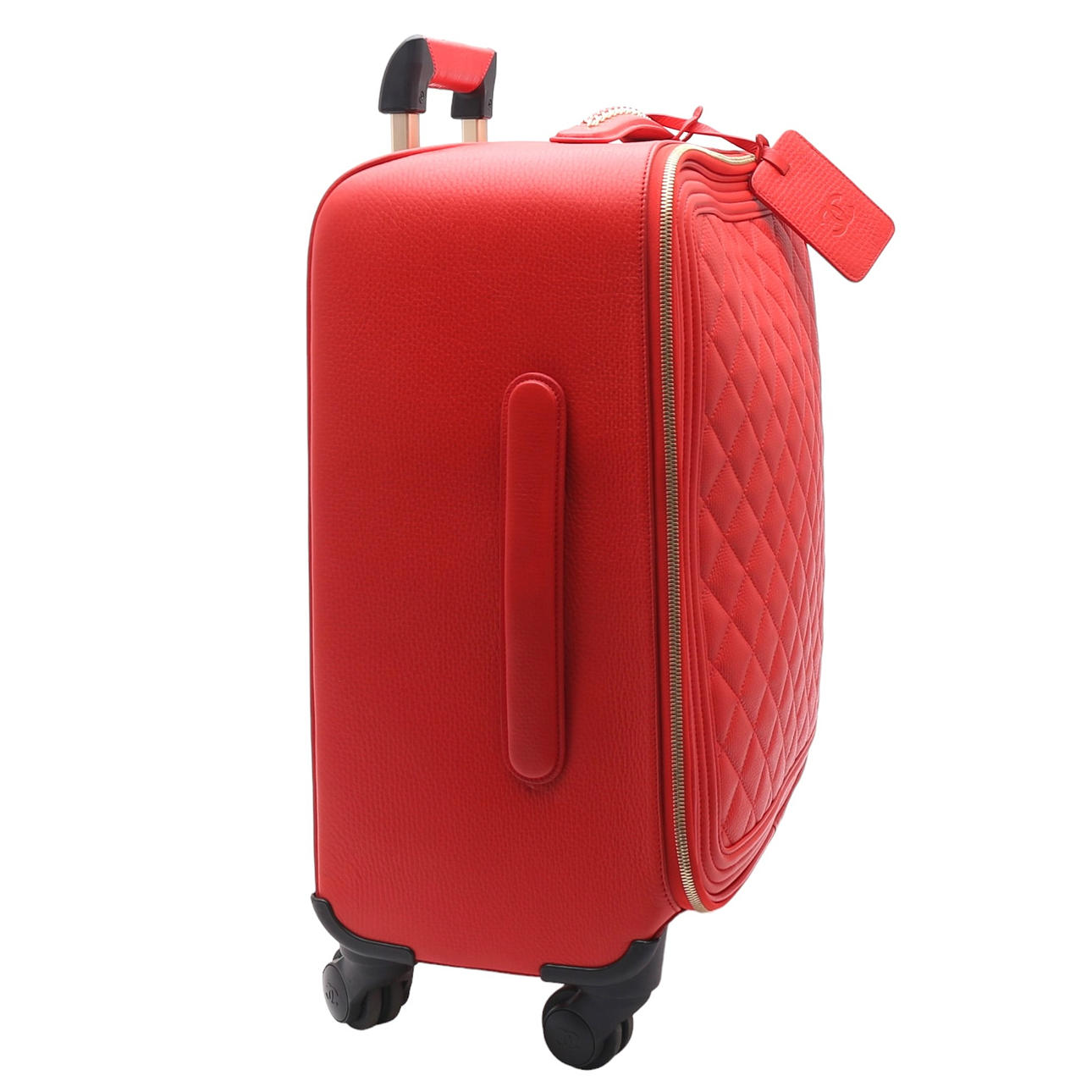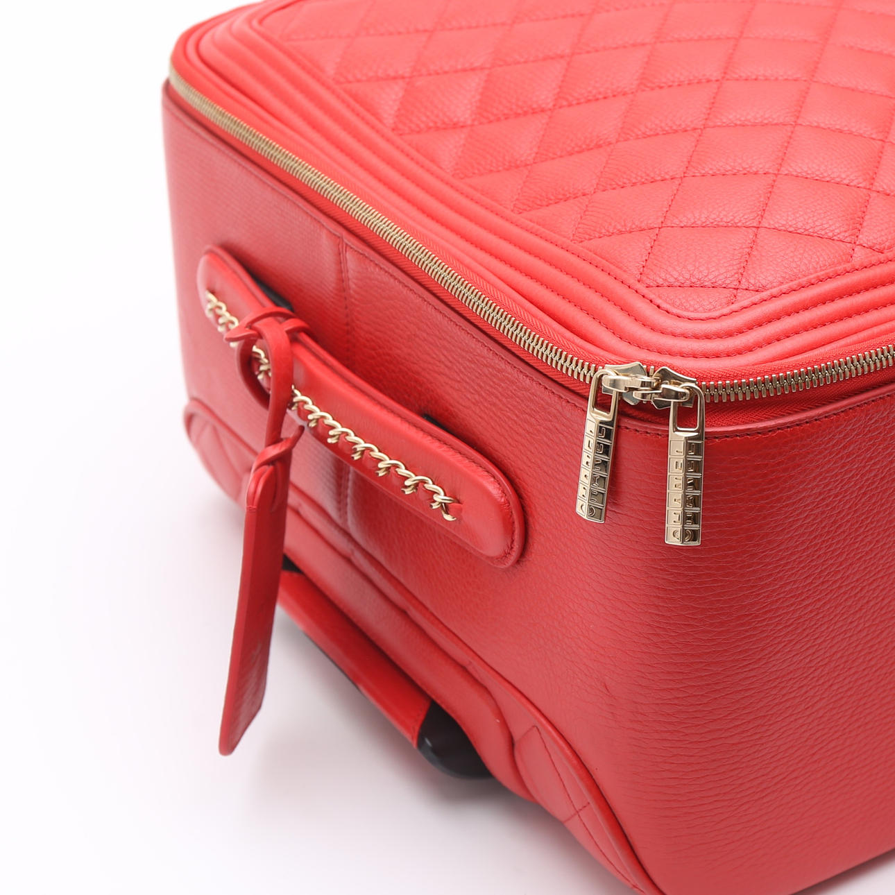 CHANEL. Maleta de piel roja "guatiné".