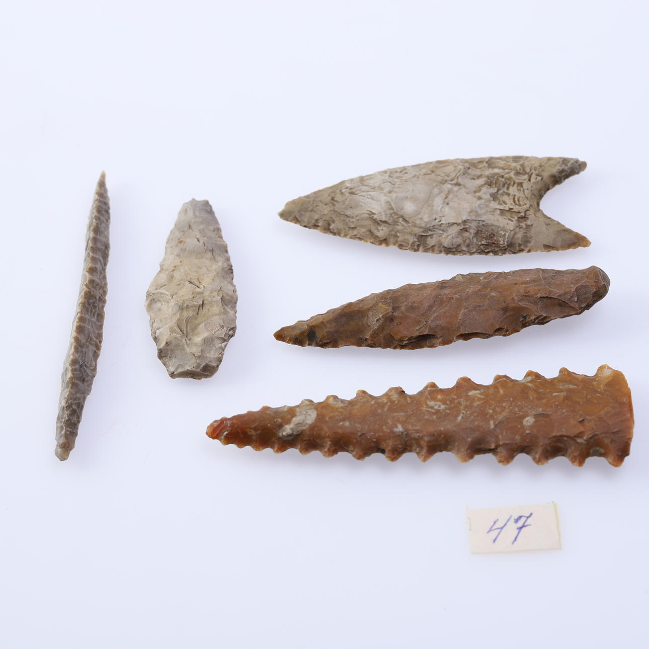 PUNTA DE LANZA DE PEDERNAL, 5 PIEZAS.