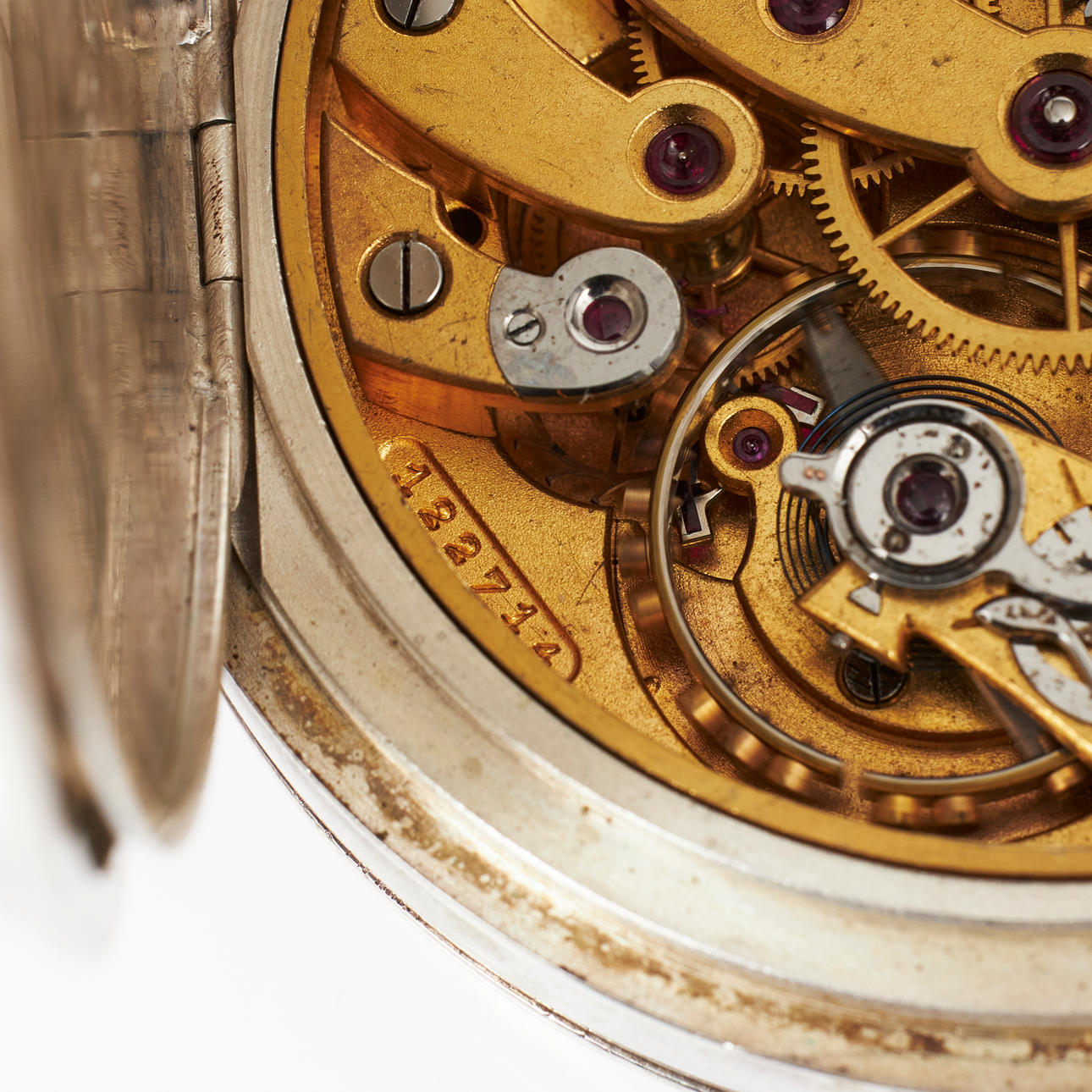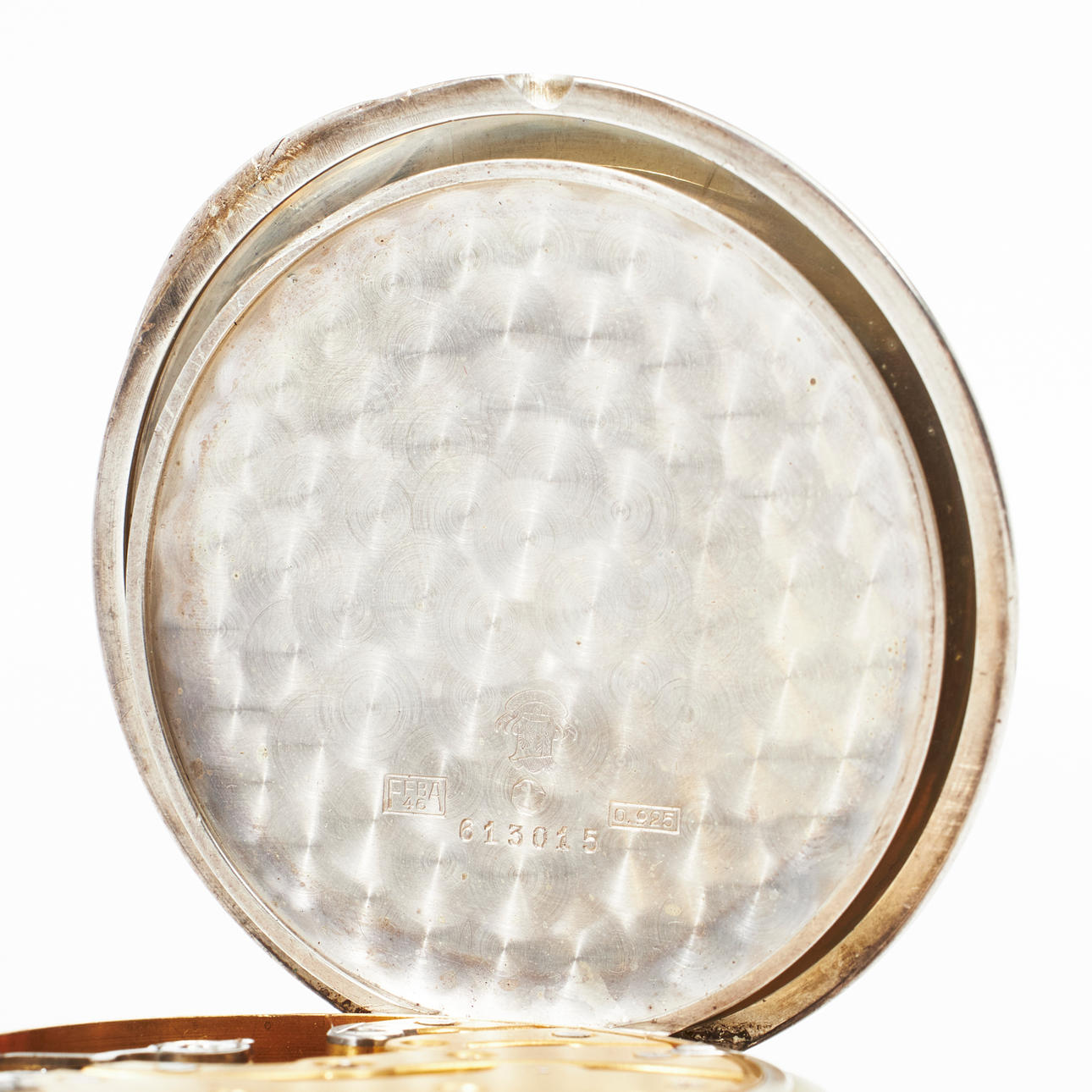 Esfera esmaltada en blanco, indicador de reserva para caminar, número de caja 613015, Instrumento núm. 122714, número de serie 122714, diámetro 63,5 mm.
