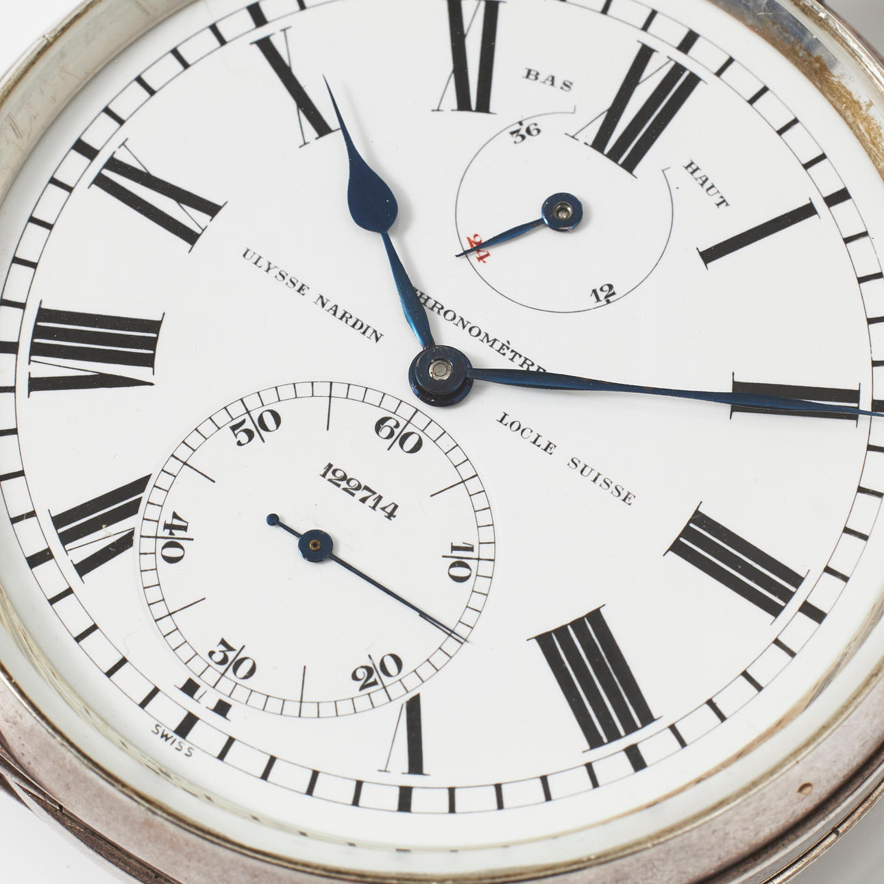 ULYSSE NARDIN, reloj de bolsillo, cronómetro, plata de ley.