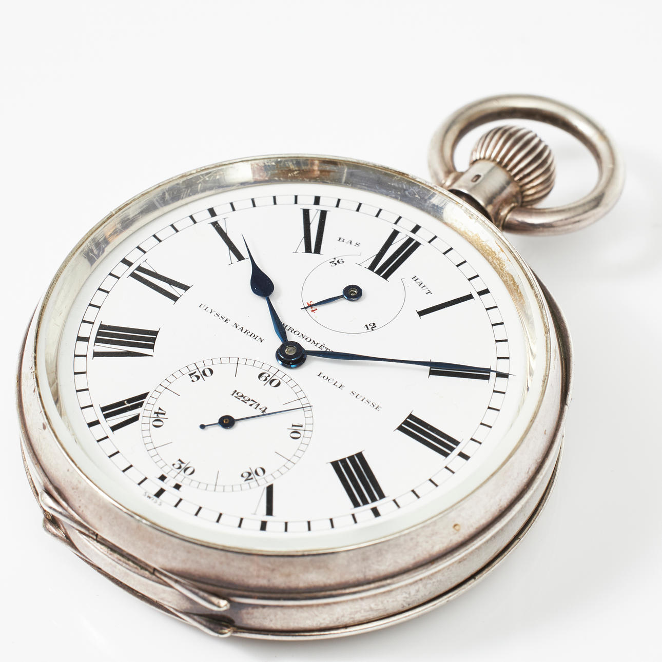 3382344. ULYSSE NARDIN, reloj de bolsillo, cronómetro, plata de ley.