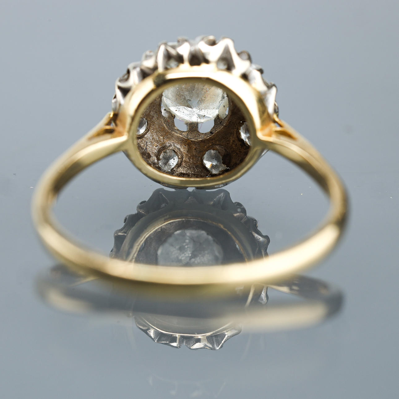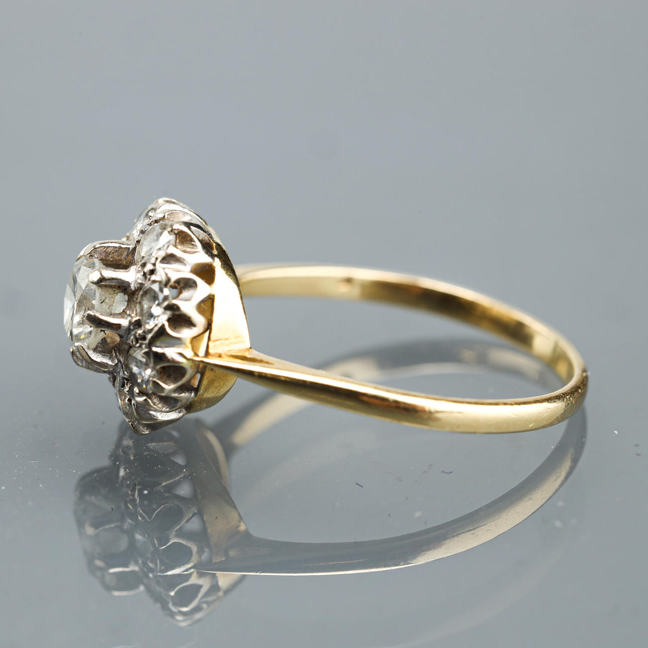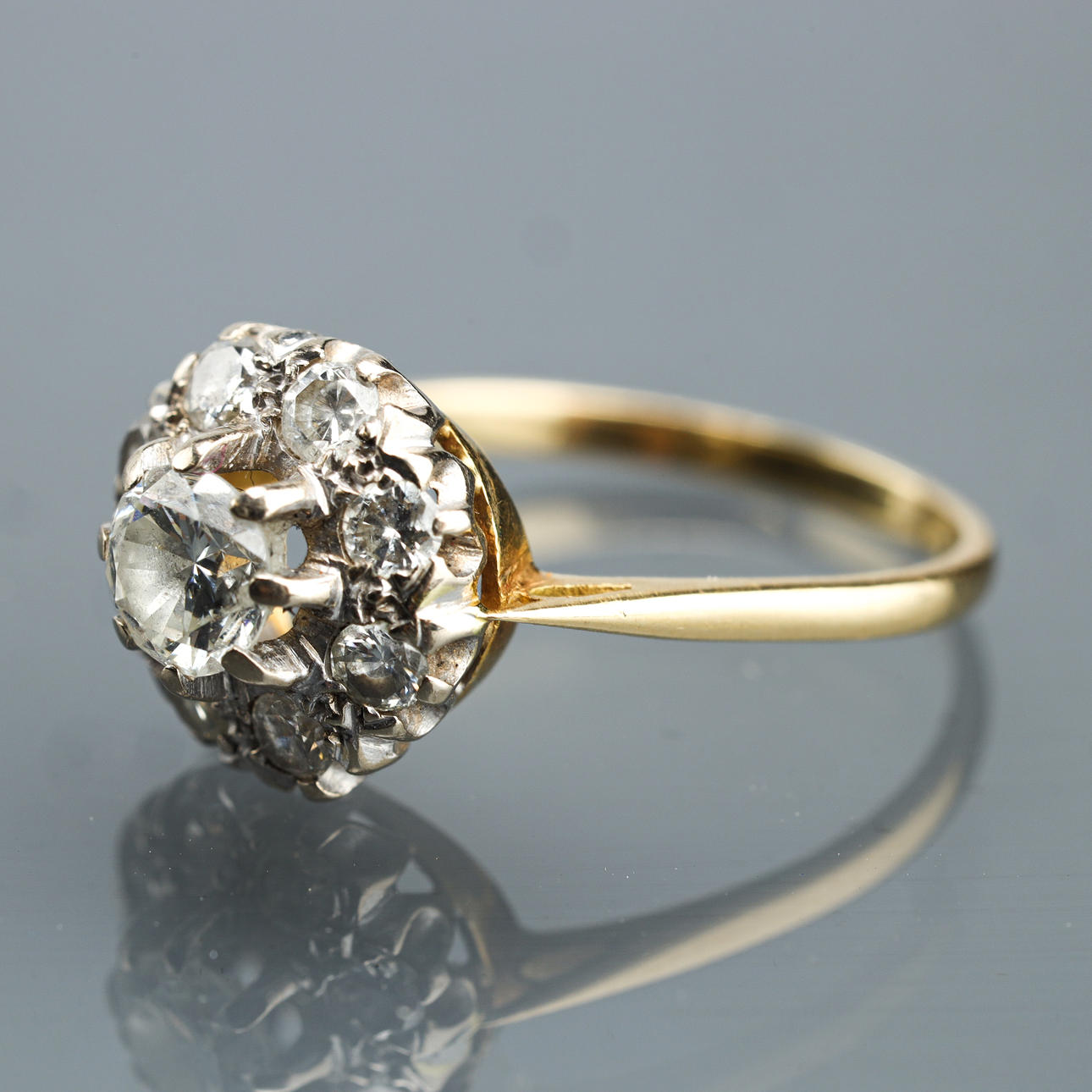 Engarzado con diamantes de un total de aproximadamente 1,35 quilates. TCR/P1. Ringstrl. alrededor de 58/18,5 mm. Pesa alrededor de 3,3 gramos.