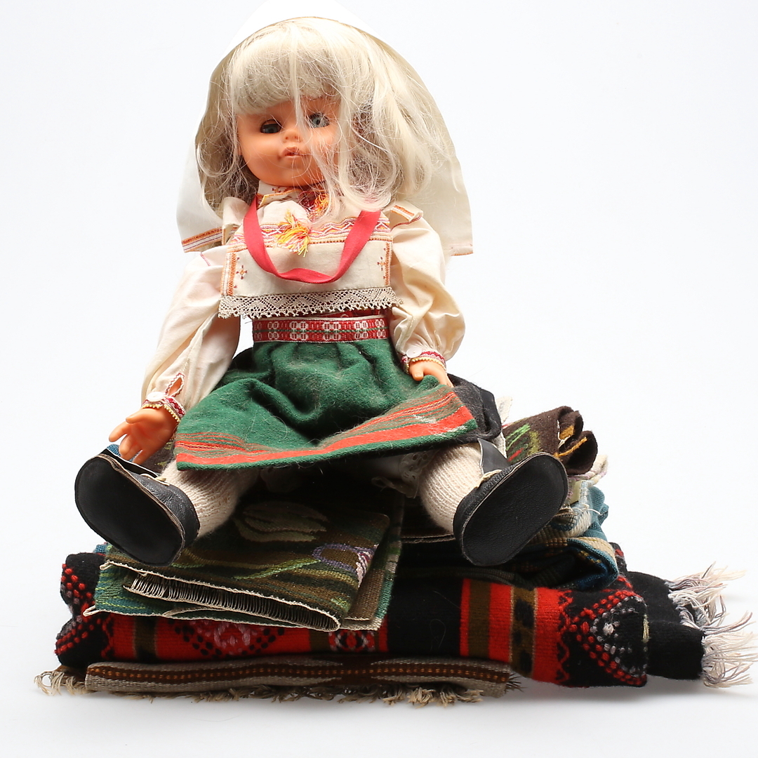 339350. TEXTILES VARIOS, 12 piezas, y MUÑECA, 1900.