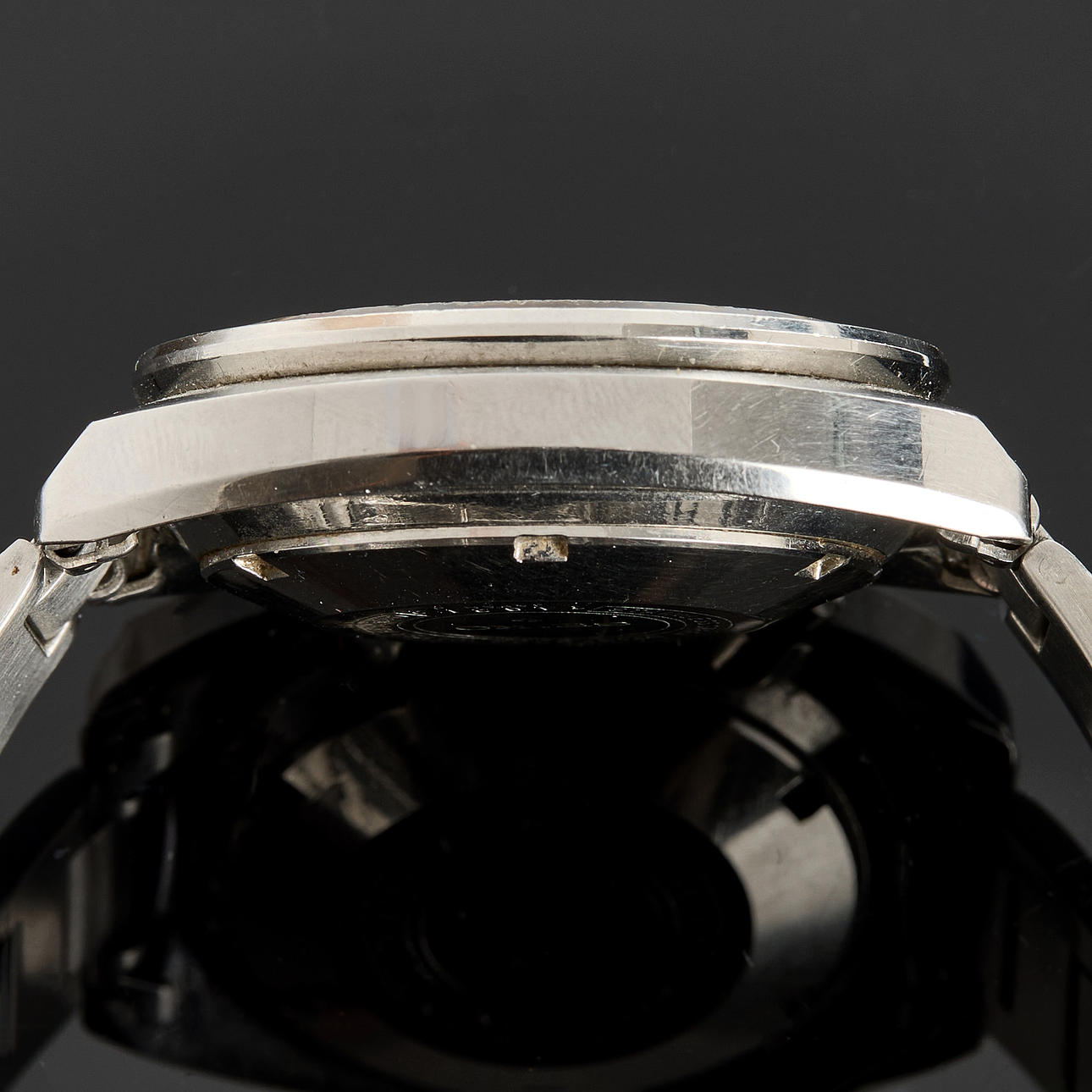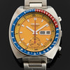 Cronógrafo, Cal.6139B. Número de referencia 6139-002. 42 mm, acero, enrollado automáticamente, cristal mineral, día/fecha, eslabón de acero Uncle Seiko, eslabón 6139 600x H, cierre desplegable, número de serie 710212. Aproximadamente 1977.
