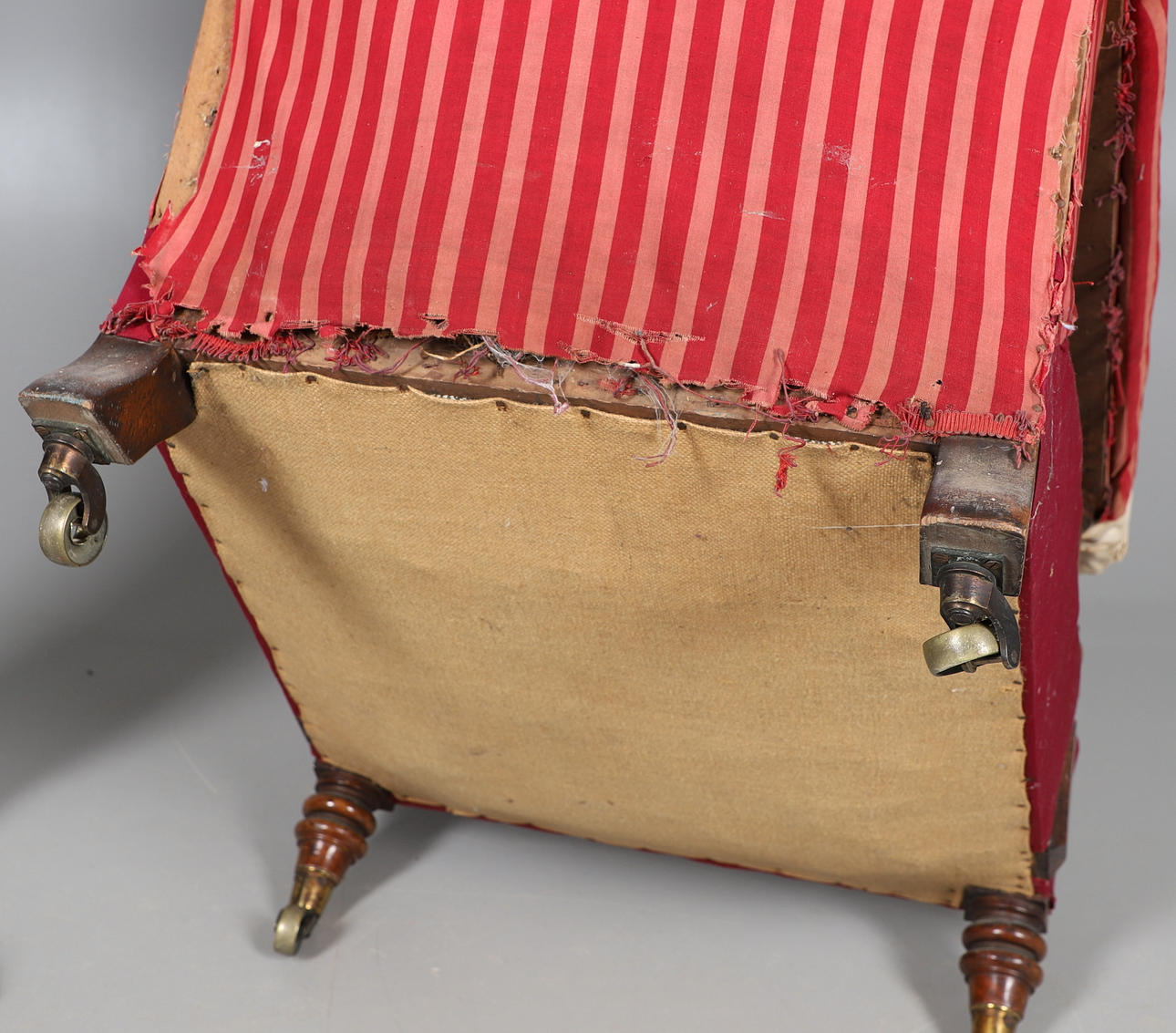 UN SILLÓN VICTORIANO DE CAOBA CON ASIENTO PROFUNDO.