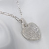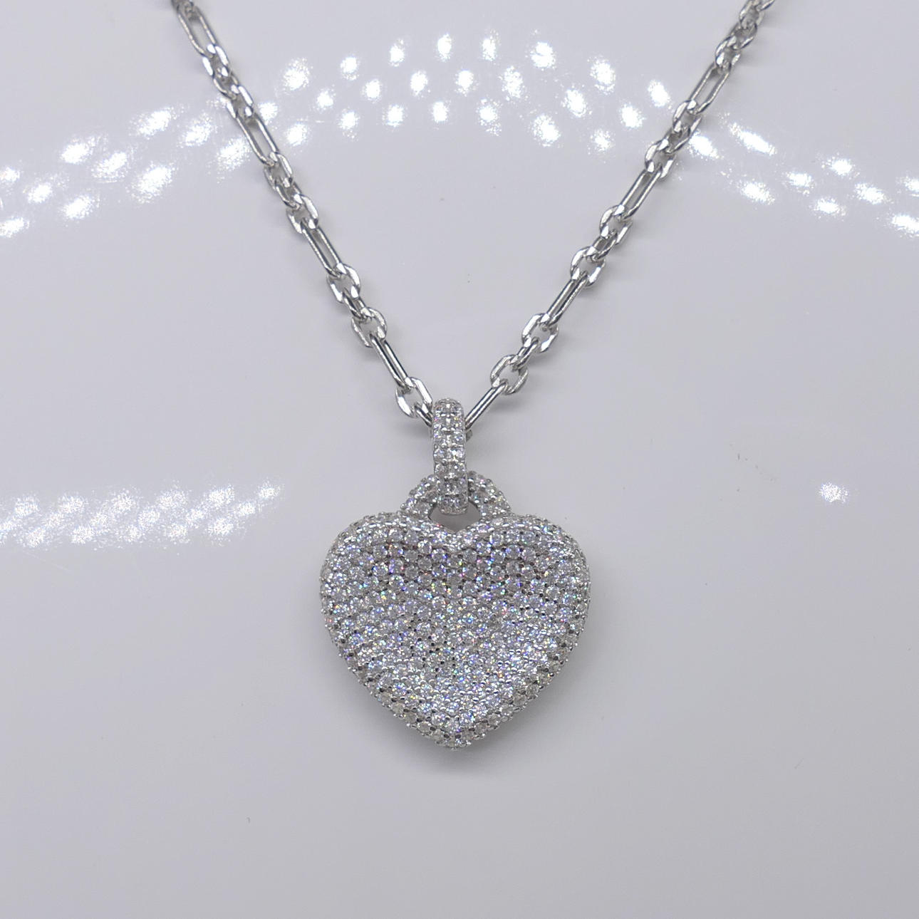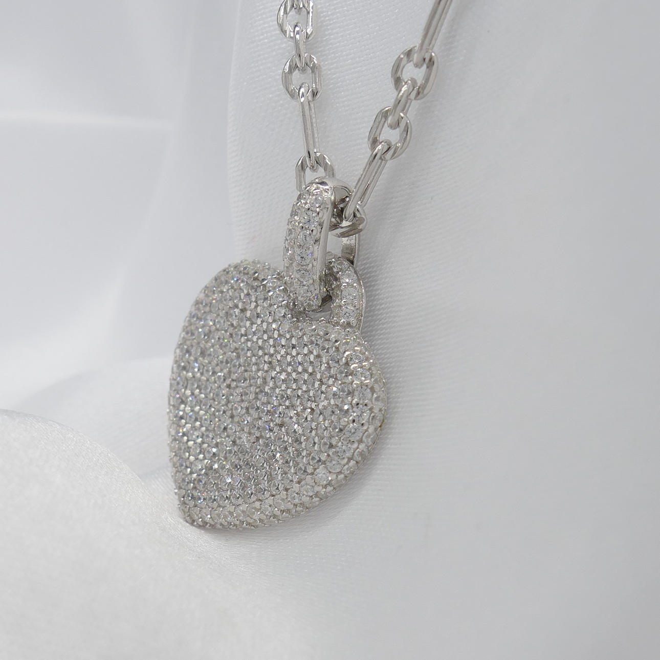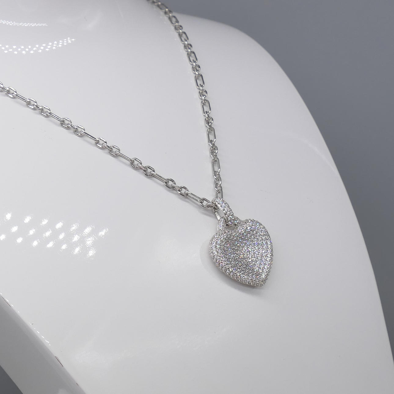 Un collar con un colgante en forma de corazón engastado en pavé con varias circonitas cúbicas blancas redondas.