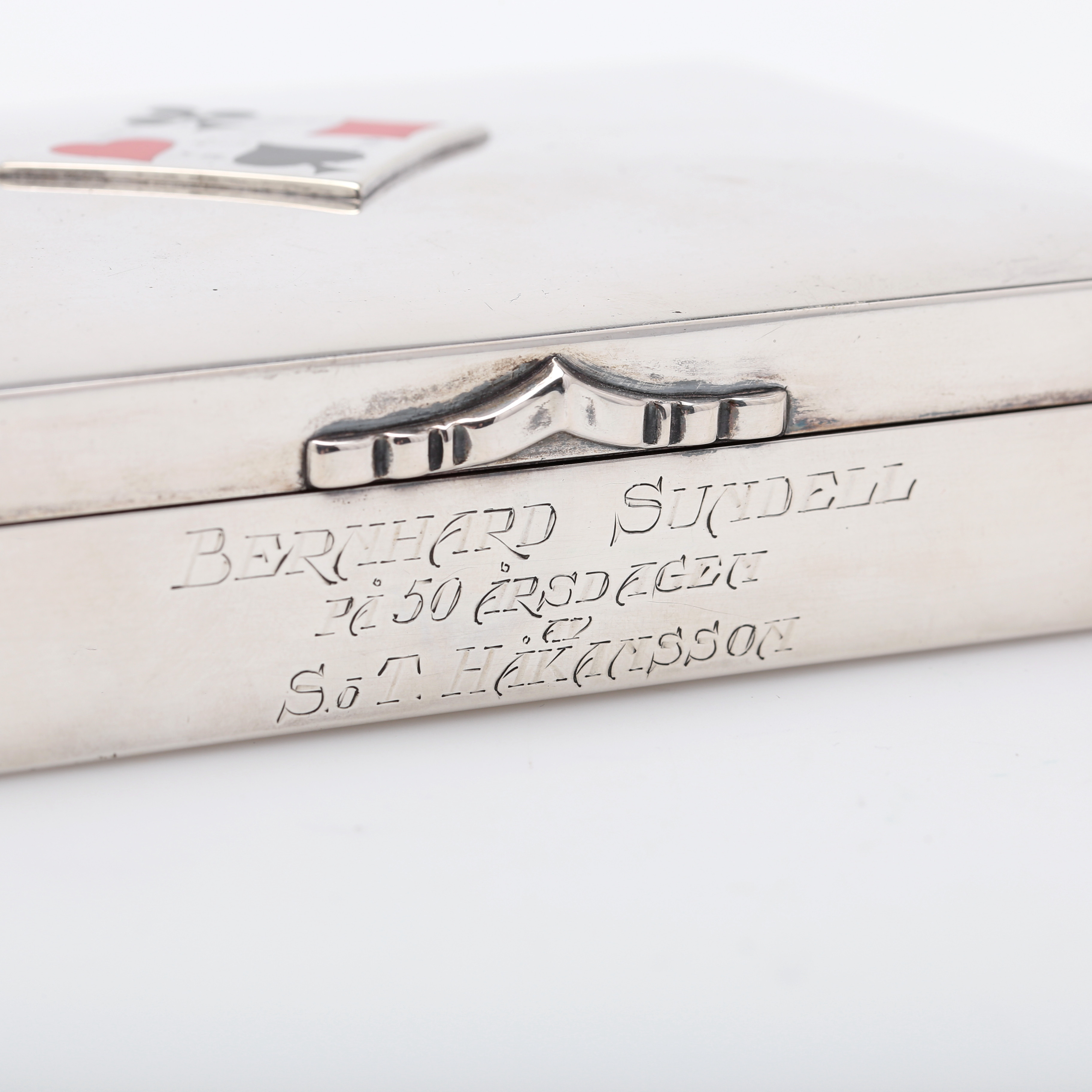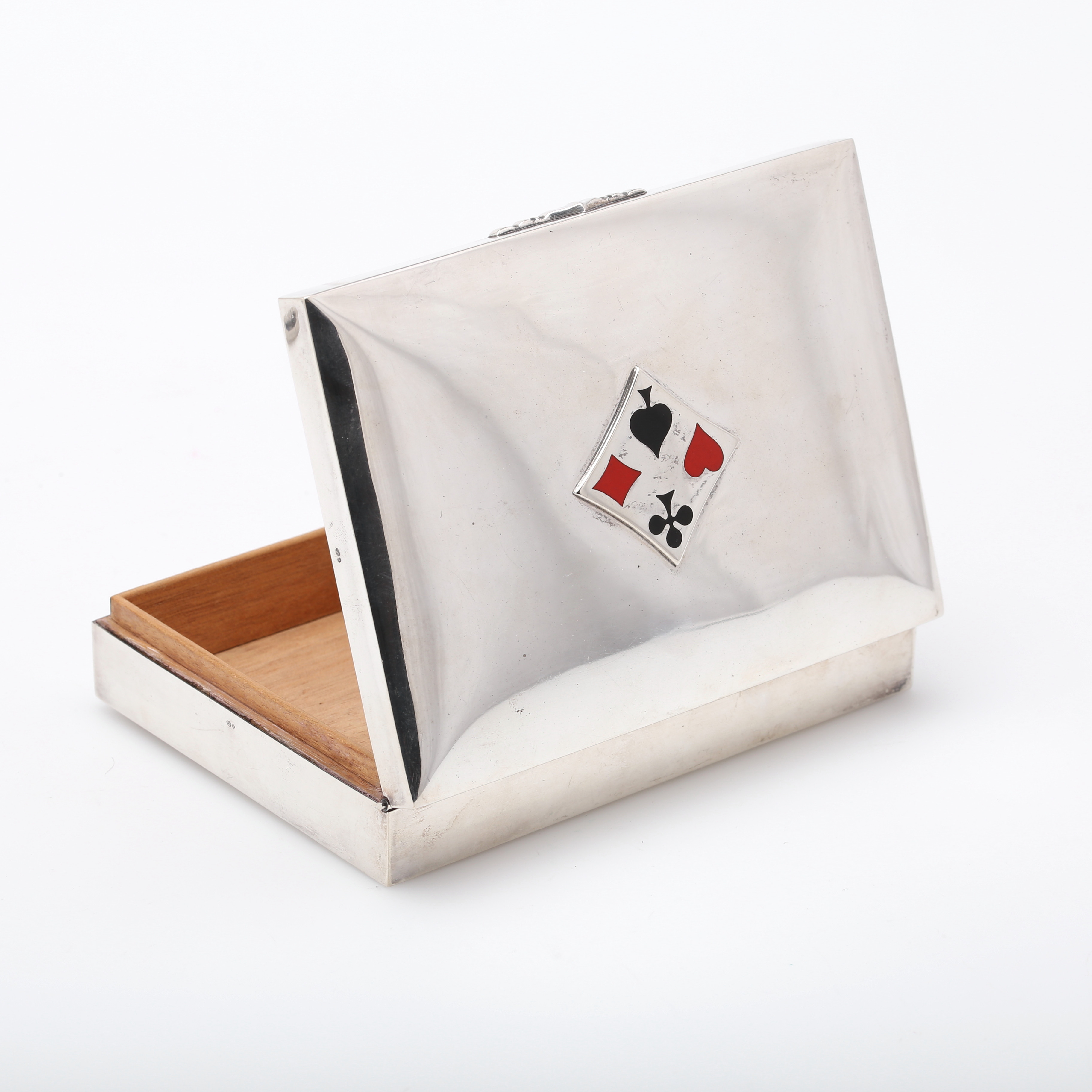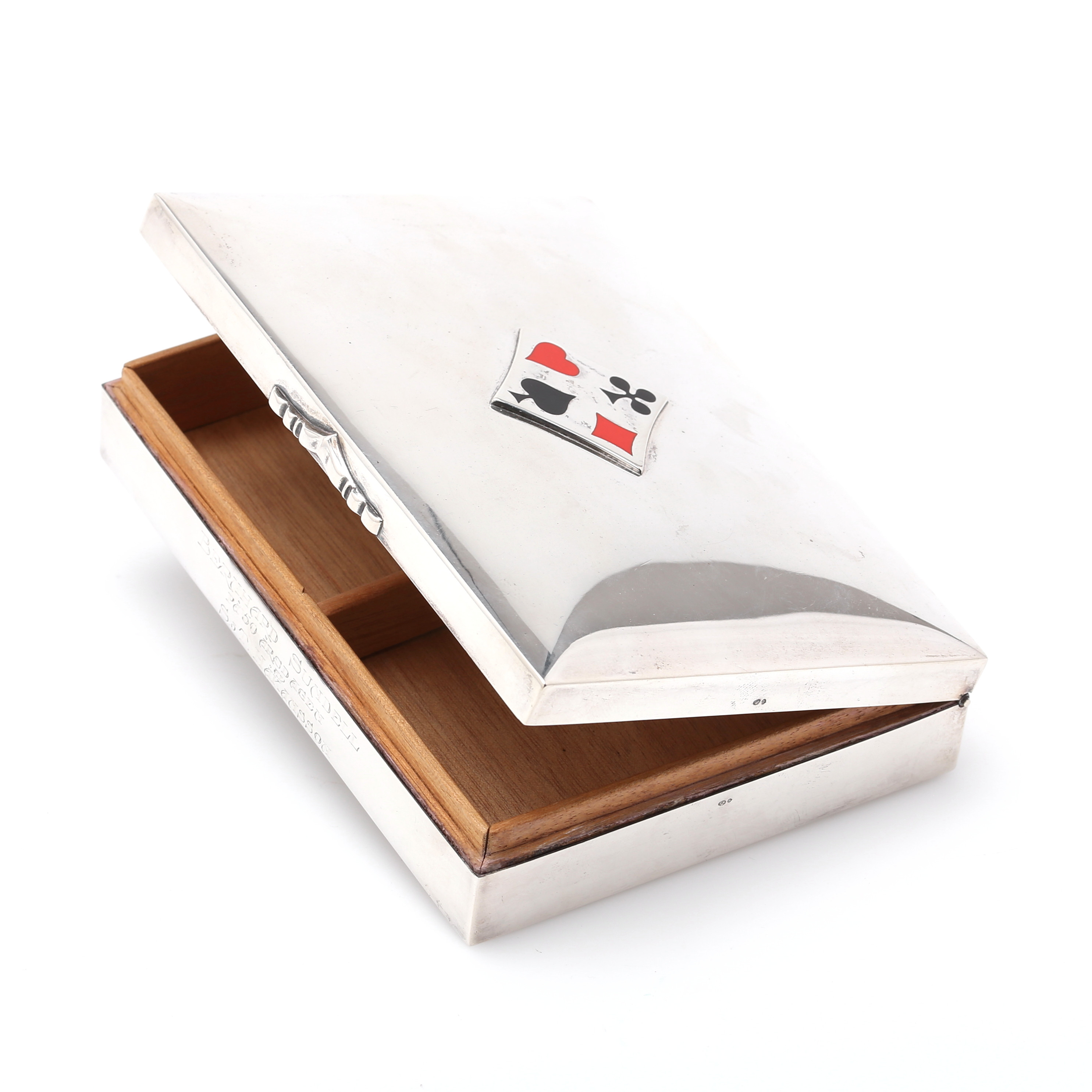 3451410. CAJA, tarjetero, plata/madera.