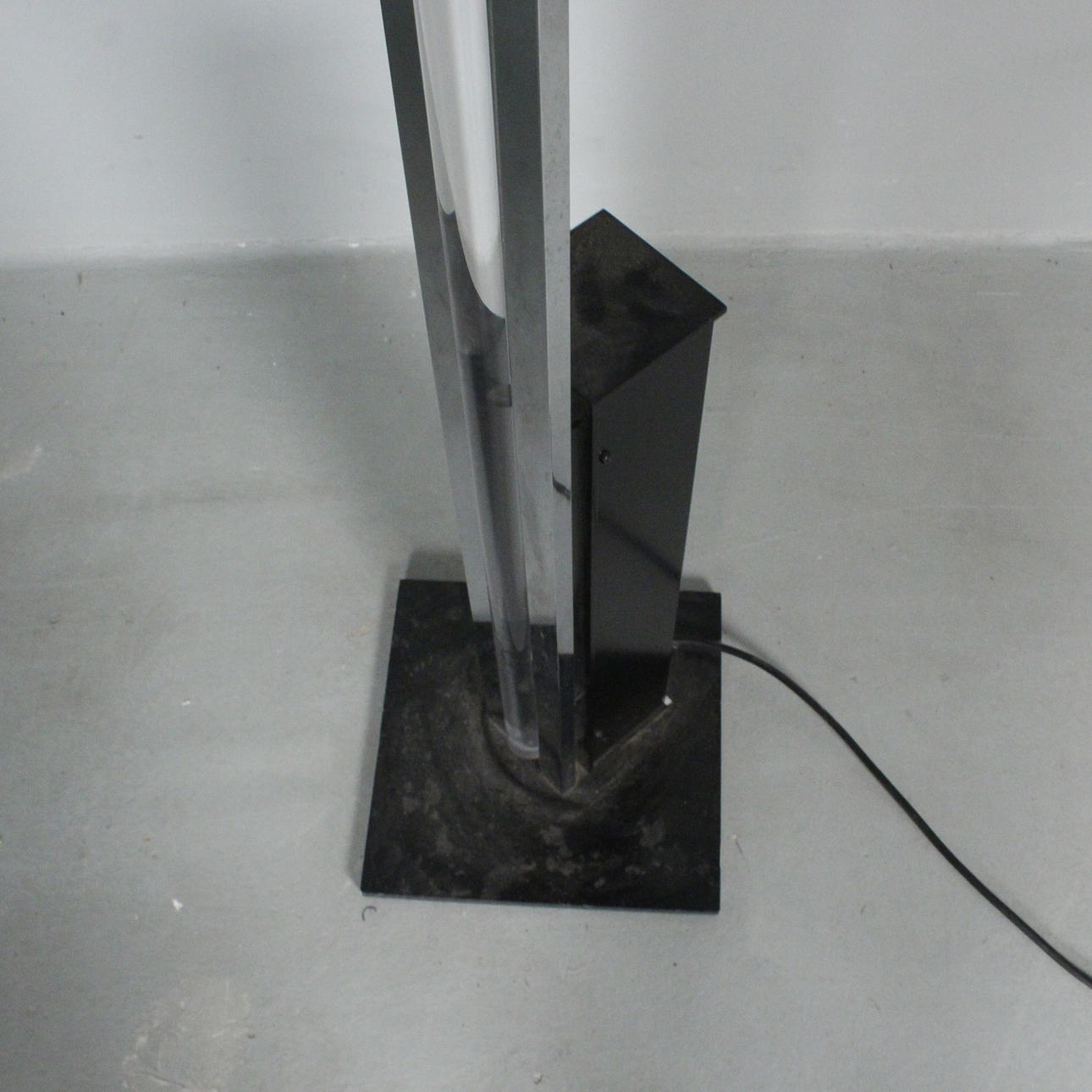 Lámpara de pie de los años 90, fabricada en metal y plástico. Medidas: h. 186 cm.