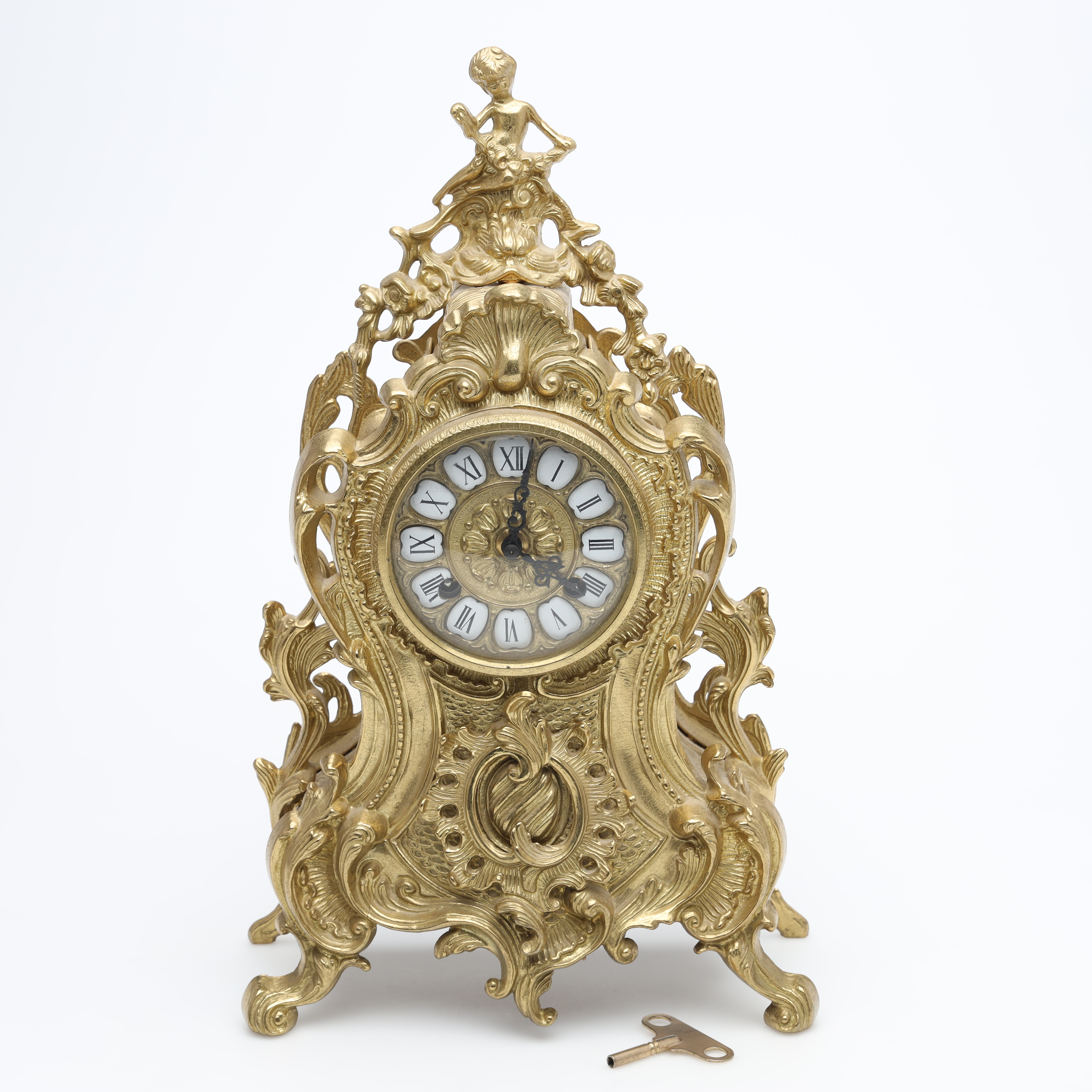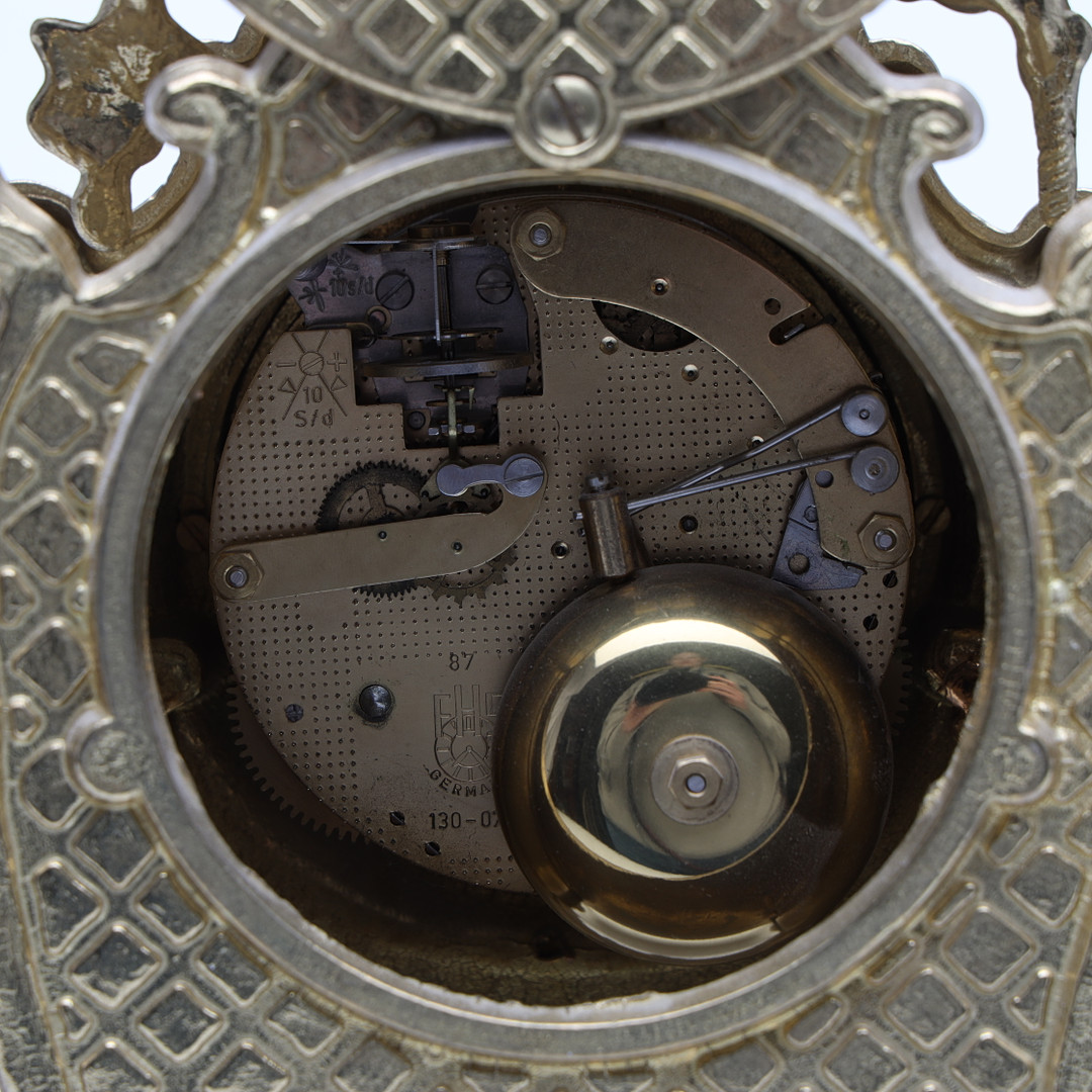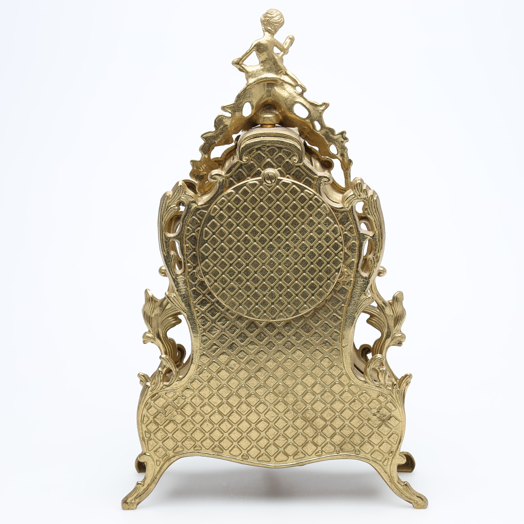 3465916. Un reloj de mesa, de metal, de estilo rococó.