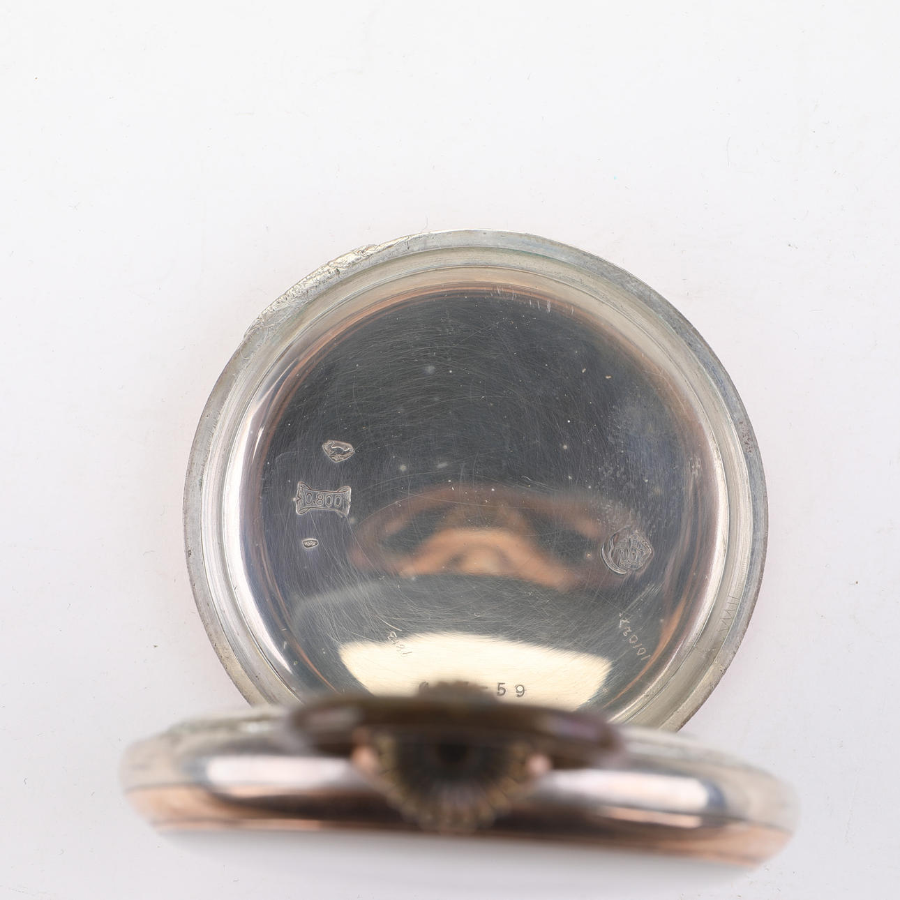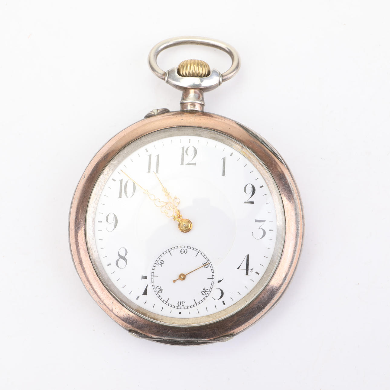 4 relojes de bolsillo y 4 sets 2 relojes de bolsillo con caja plateada alrededor de ø 40-50 mm.