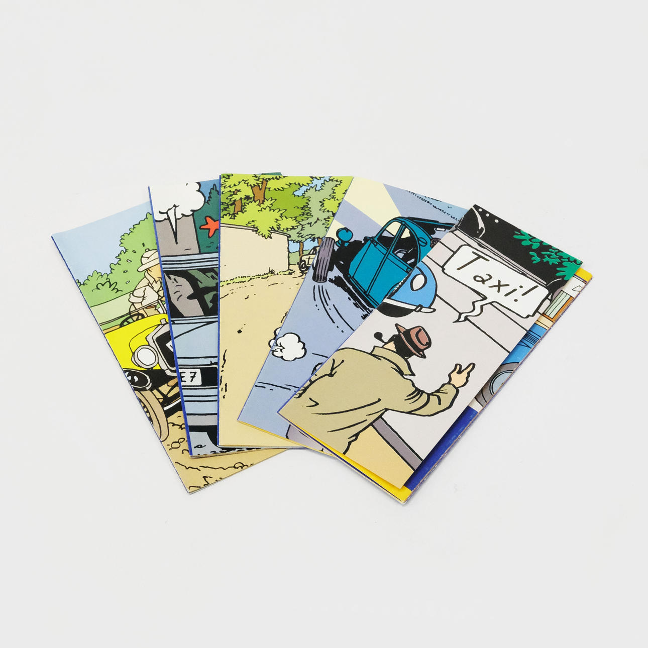 En cajas expositoras. Tres coches de «Las joyas de Castafiore», uno de «Las 7 bolas de cristal» y otro de «Tintín en el Congo». Certificado de autenticidad incluido.