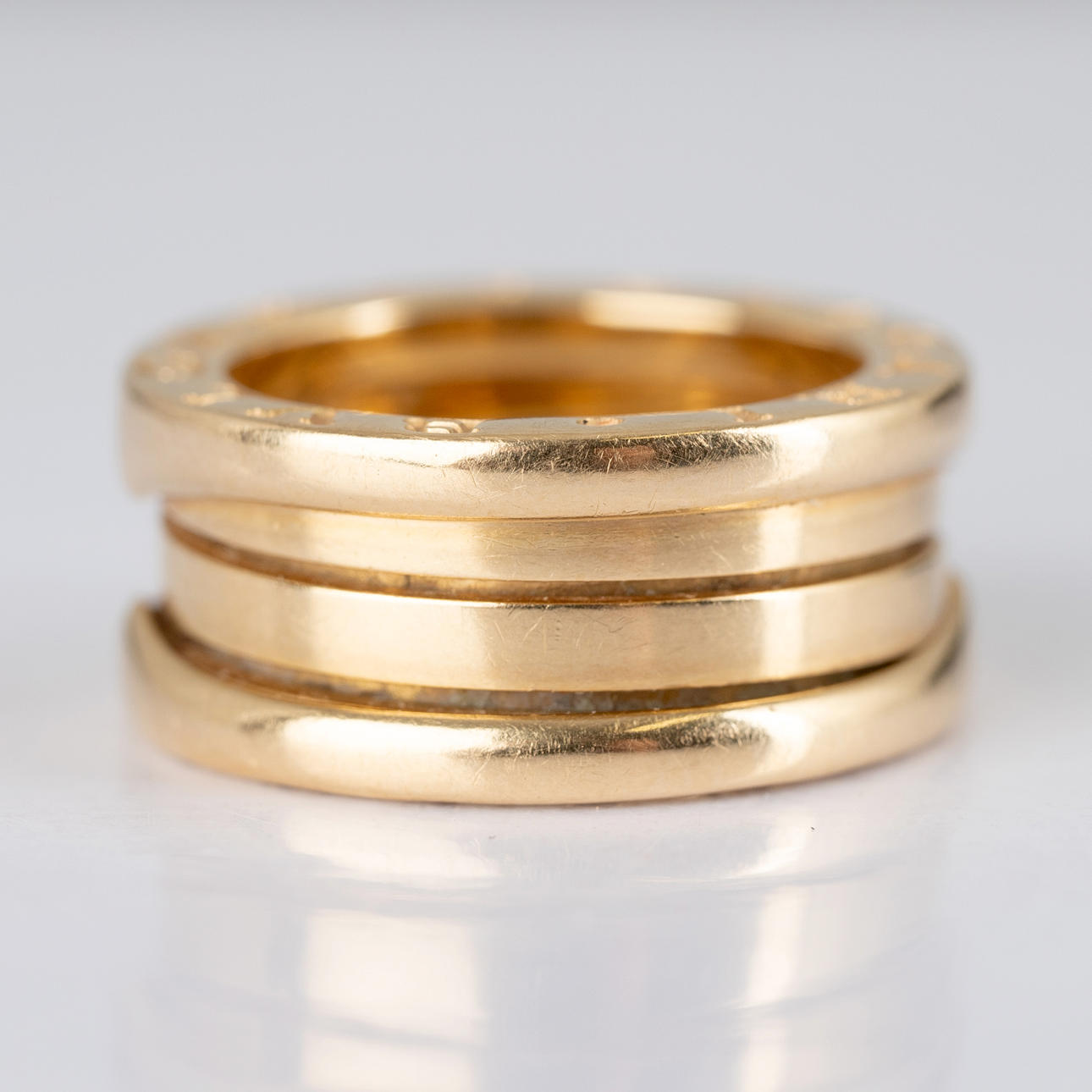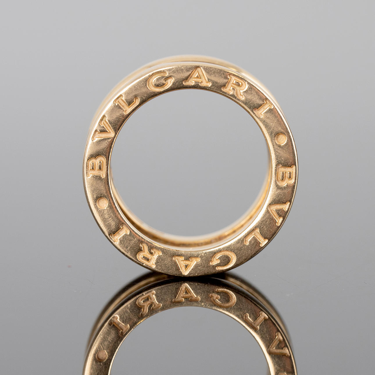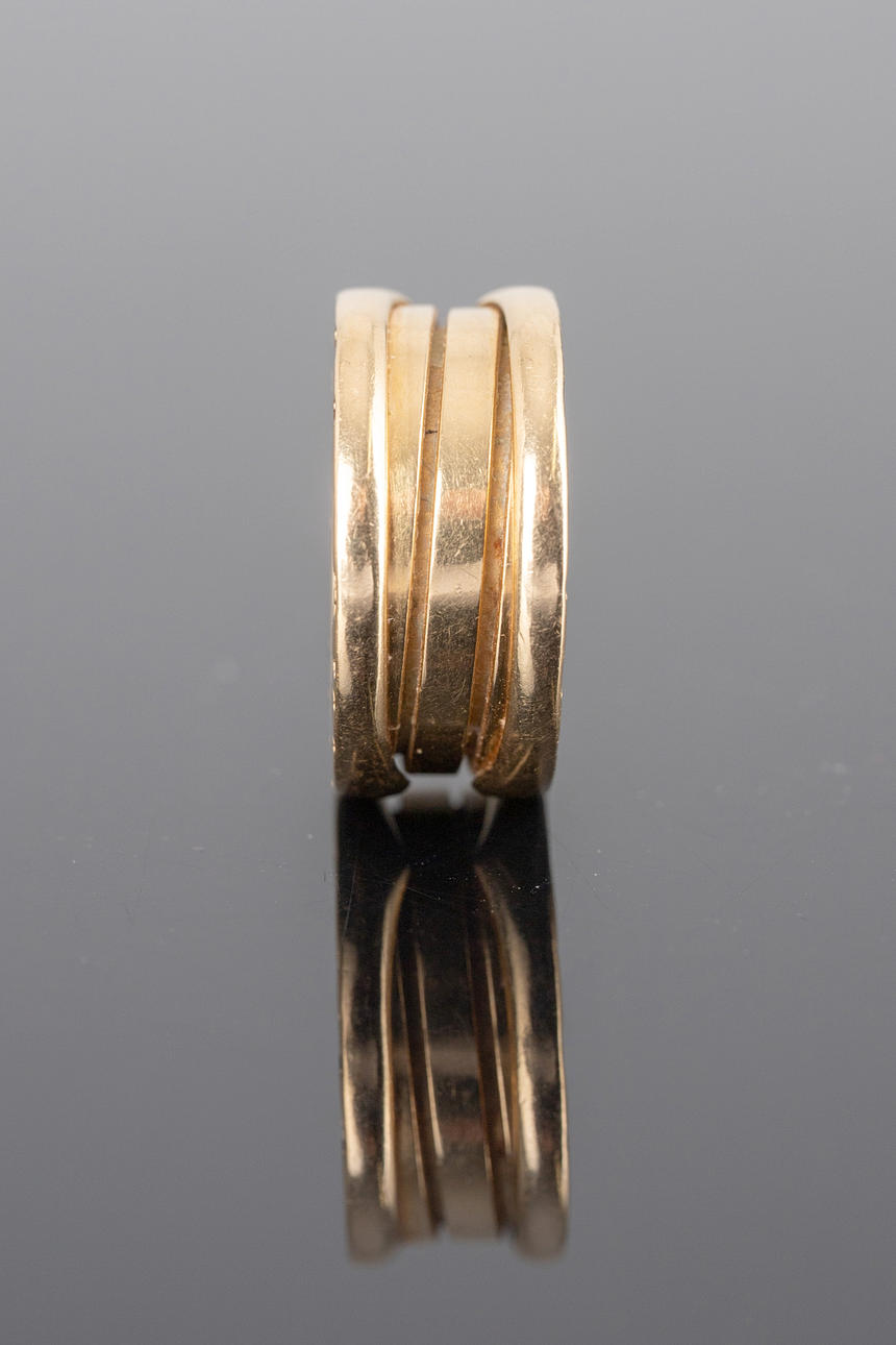 Anillo BVLGARI, modelo «B-zero 1", fabricado en oro 750. Tamaño aproximado del anillo 47. Peso ca. 8,4 gramos.