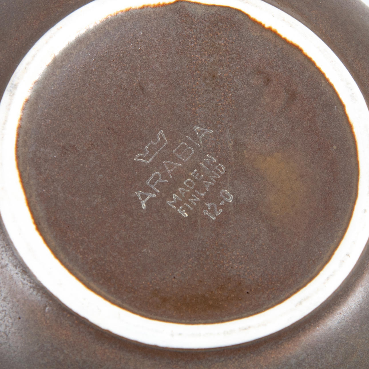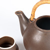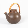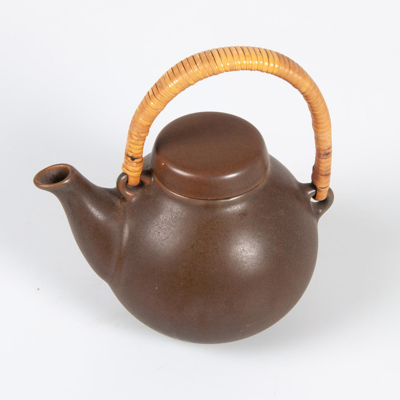 Gres, con esmalte marrón, mango de ratán, altura 15,5 cm.