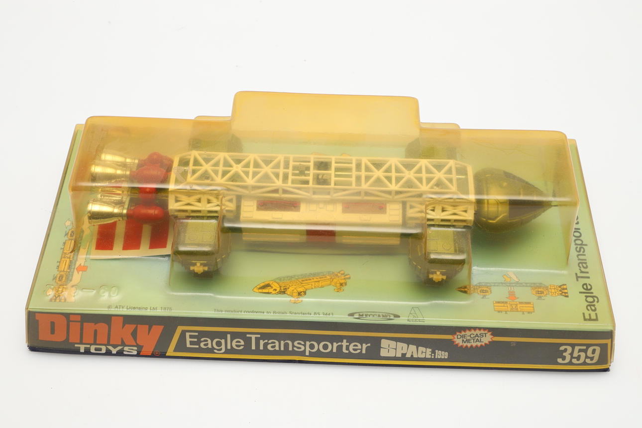 Dos modelos de paquetes de burbujas, incluidos el 359 Eagle Transporter Space 1999 y el 683 Chieftain Tank. (2).