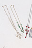 Un collar con gotero de metal blanco y pasta roja, 16 pulgadas de largo.