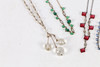 Al collar Green Station le falta un colgante en forma de gota en el centro y un anillo en el extremo de la cadena. Alguna decoloración metálica. Las piedras están en buenas condiciones.