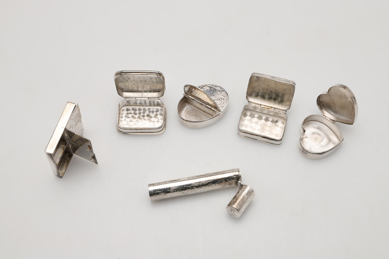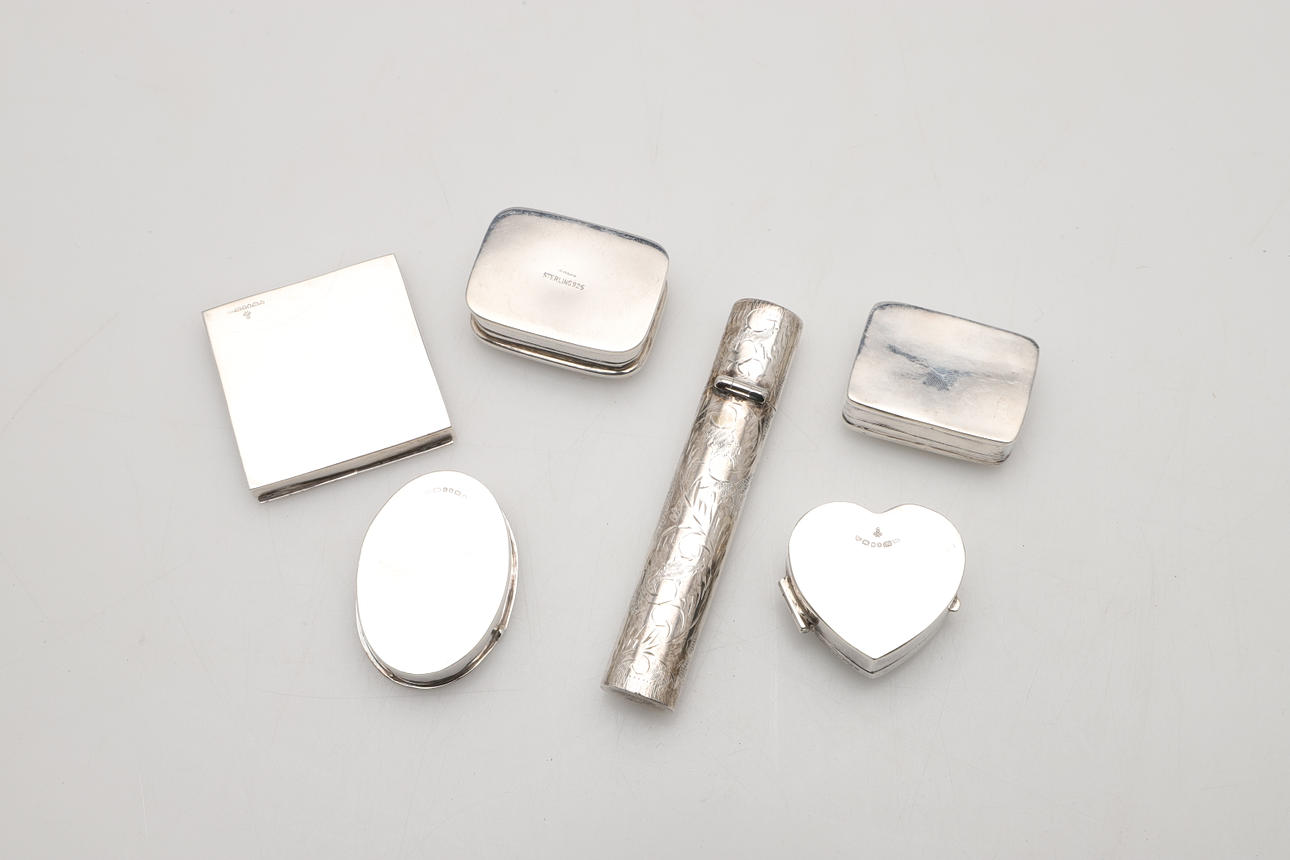 incluye un soporte para palillos de plata de ley con decoración foliada grabada, 8 cm de largo, un pastillero de plata de ley con decoración similar, 3,3 cm x 2,5 cm x 1,1 cm, un pastillero de plata de ley con forma de corazón, 3 cm x 3 cm, un pastillero rectangular liso de plata de ley, 3,5 cm x 2,6 cm x 1,2 cm, un sello cuadrado de cuatro compartimentos de plata de ley con decoración foliada grabada, 4 cm x 4 cm, y una caja de sellos de plata de ley a juego pastillero de dos compartimentos, 4 cm x 3 cm, 3,24 oz (6).