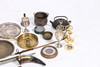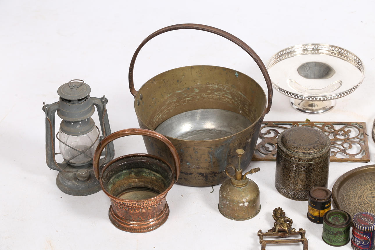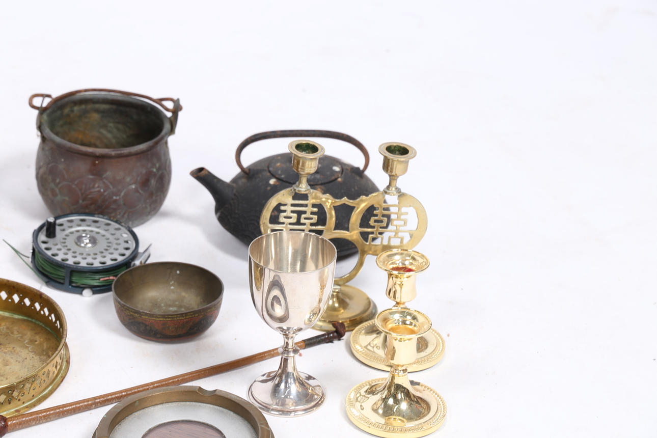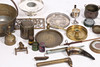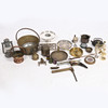 incluye una lata india con el sello «mukhn-lal moradabad», un candelabro de latón, ropa plateada, etc. (cantidad).