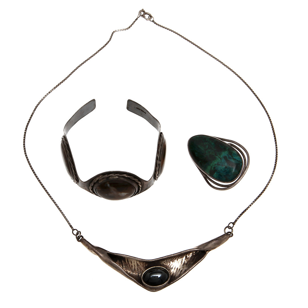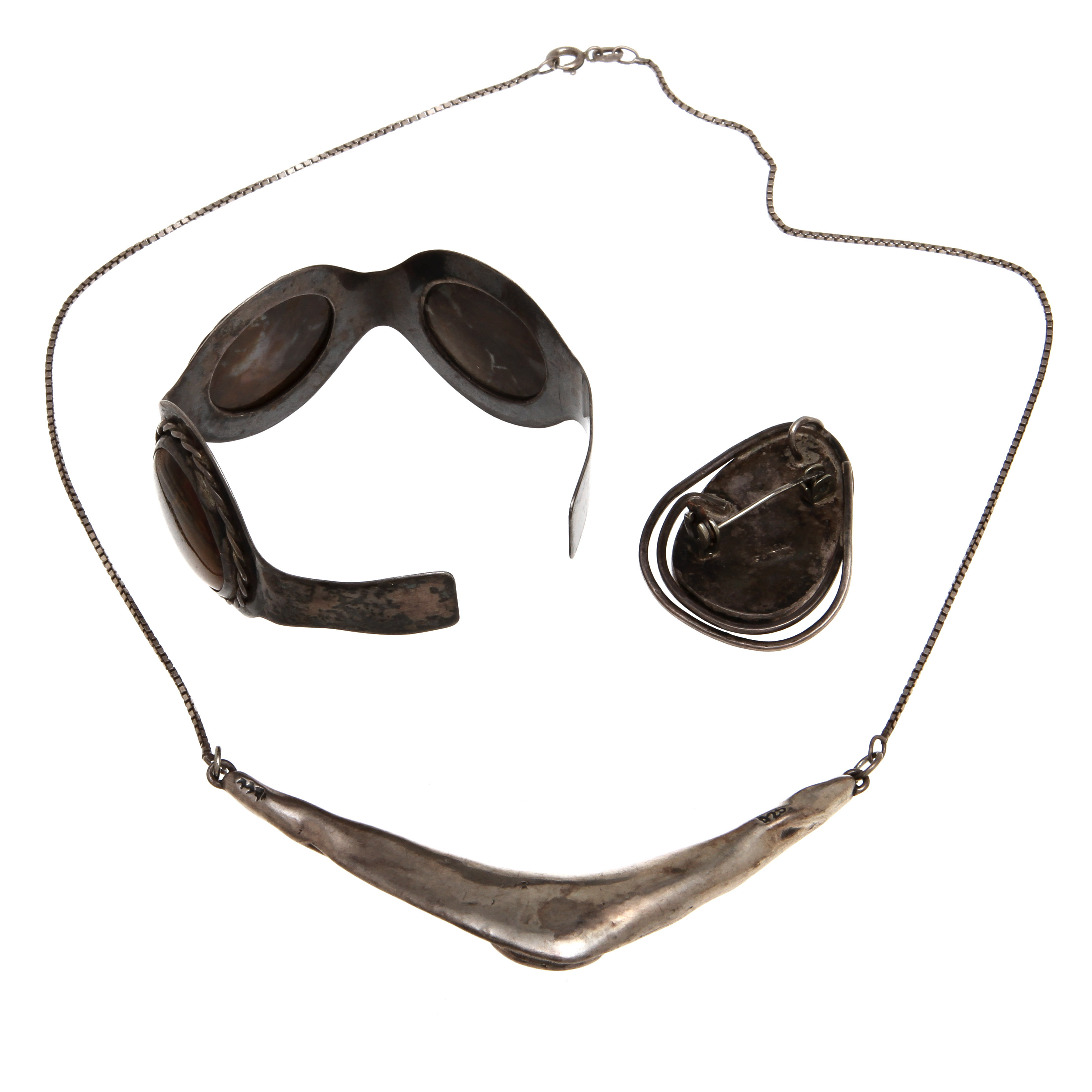 349653. PULSERA, BROCHE y COLLAR, plata.