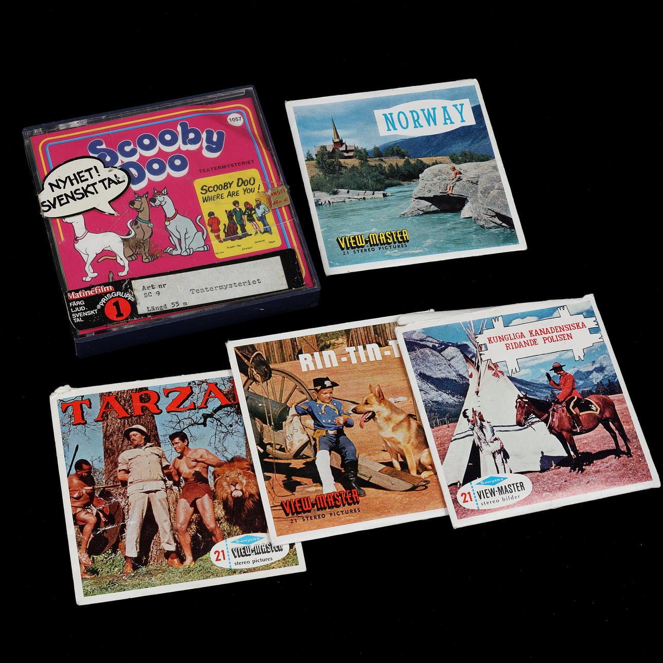 4 View-Master, Sawyers, «Noruega», «Rin-Tin-Tin», «Tarzán», «Policía Real de Equitación de Canadá»