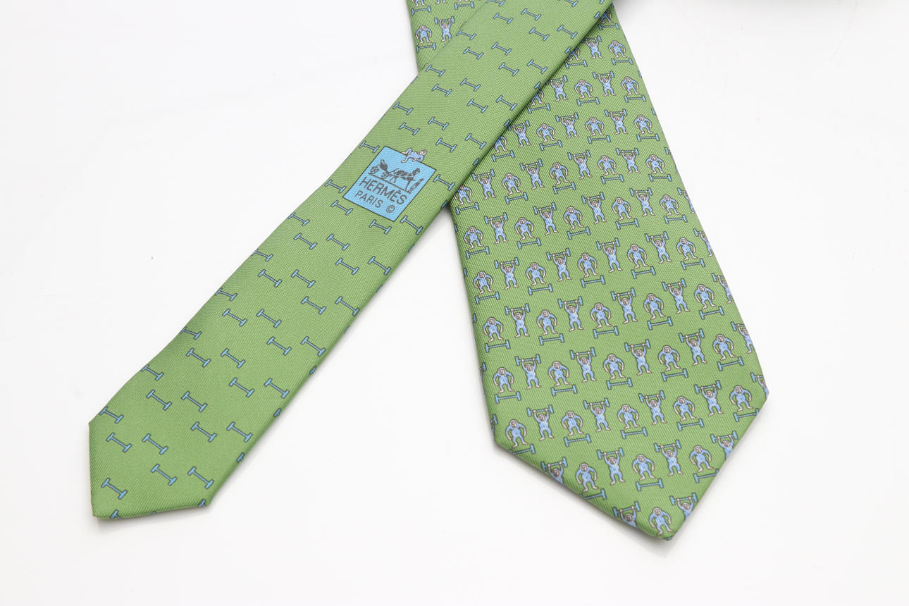 HERMÈS, CORBATA, seda verde claro con levantador de pesas.