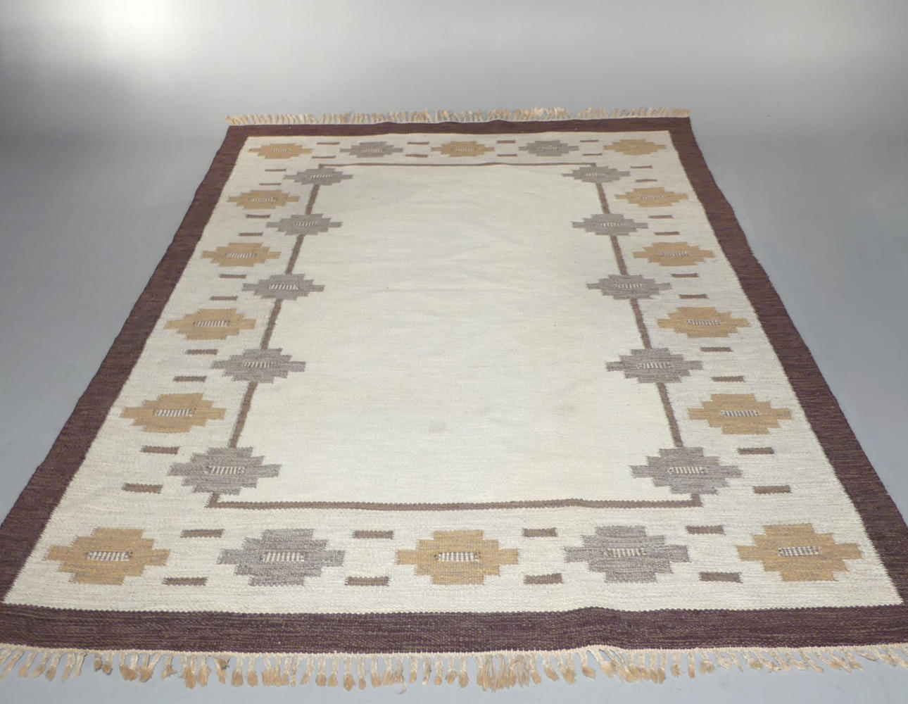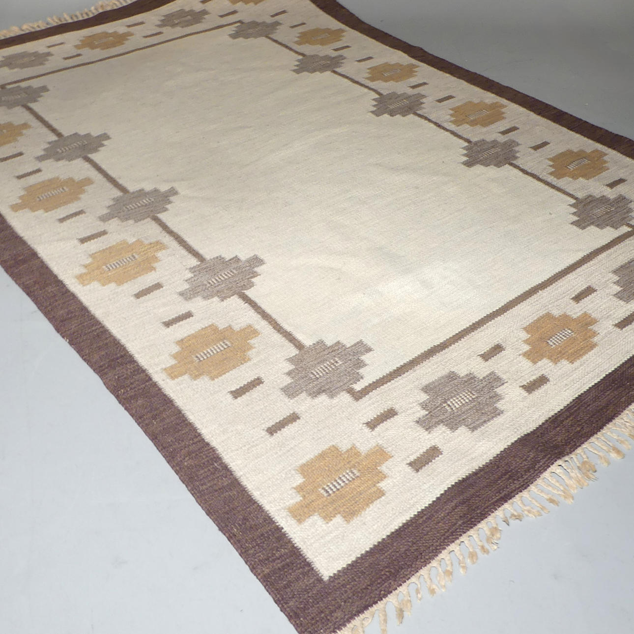 Desgaste leve en los bordes, pestañas deshilachadas, algunos puntos débiles.