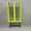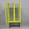 Lacado en oro con dos puertas y tres estantes de cristal.
