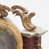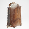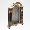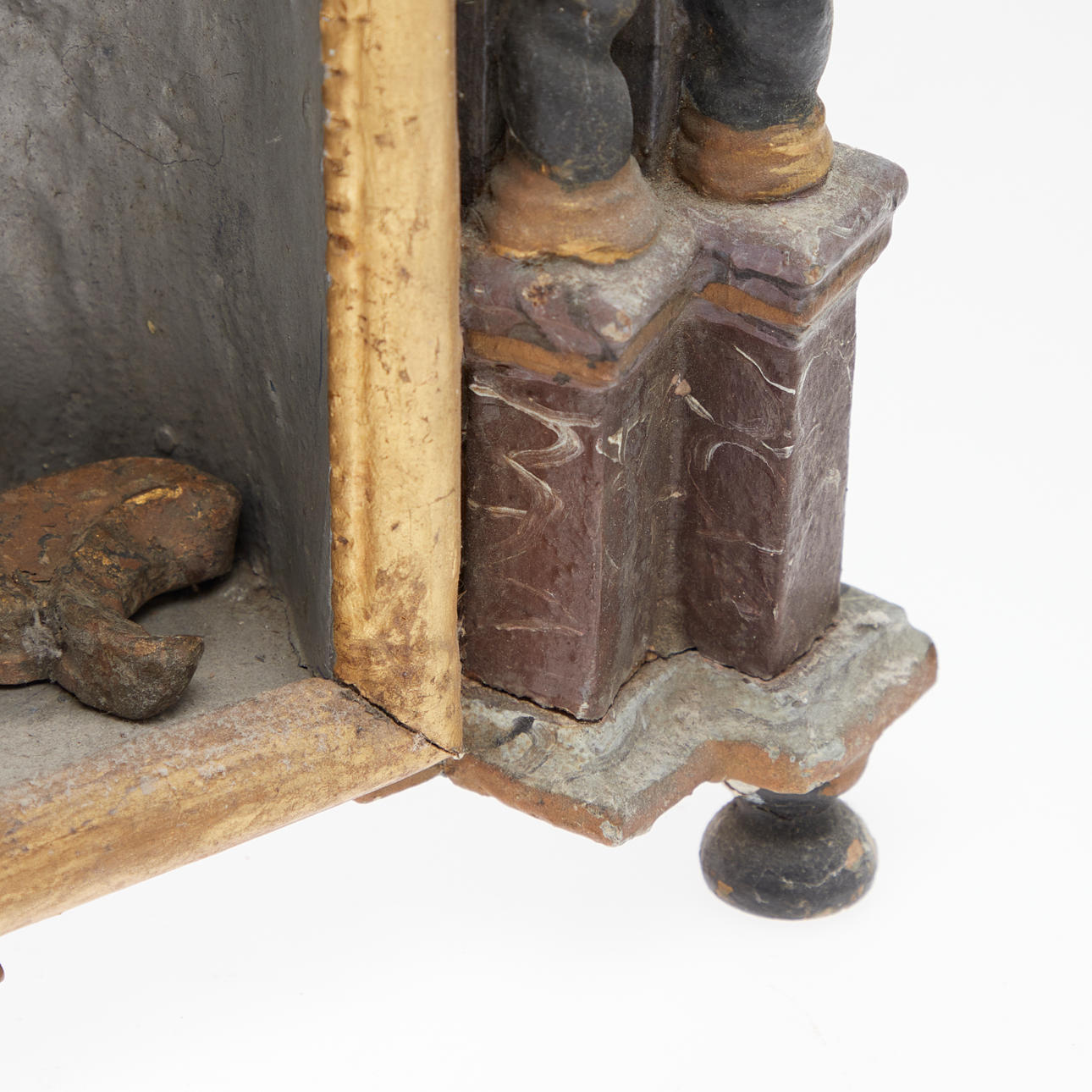 Altar con figuras de madera hecho de cuatro patas de pie y flanqueado por dos columnas de Salomón, pintado de policromía, equipado con un colgador de pared en la parte posterior, 49 cm de alto, 38 cm de ancho y 14 cm de profundidad.
