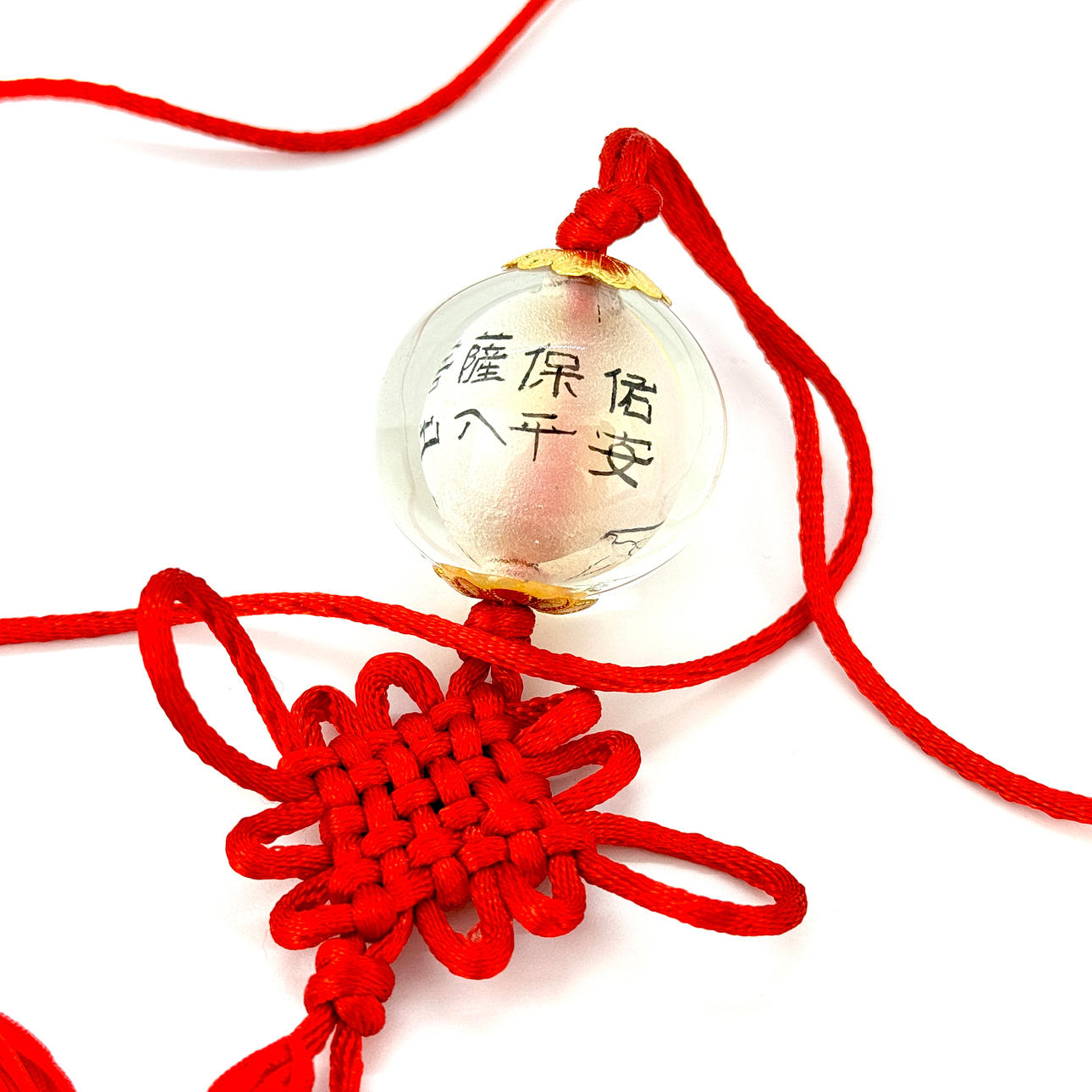 AMULETO CHINO DE VIDRIO Y SEDA.