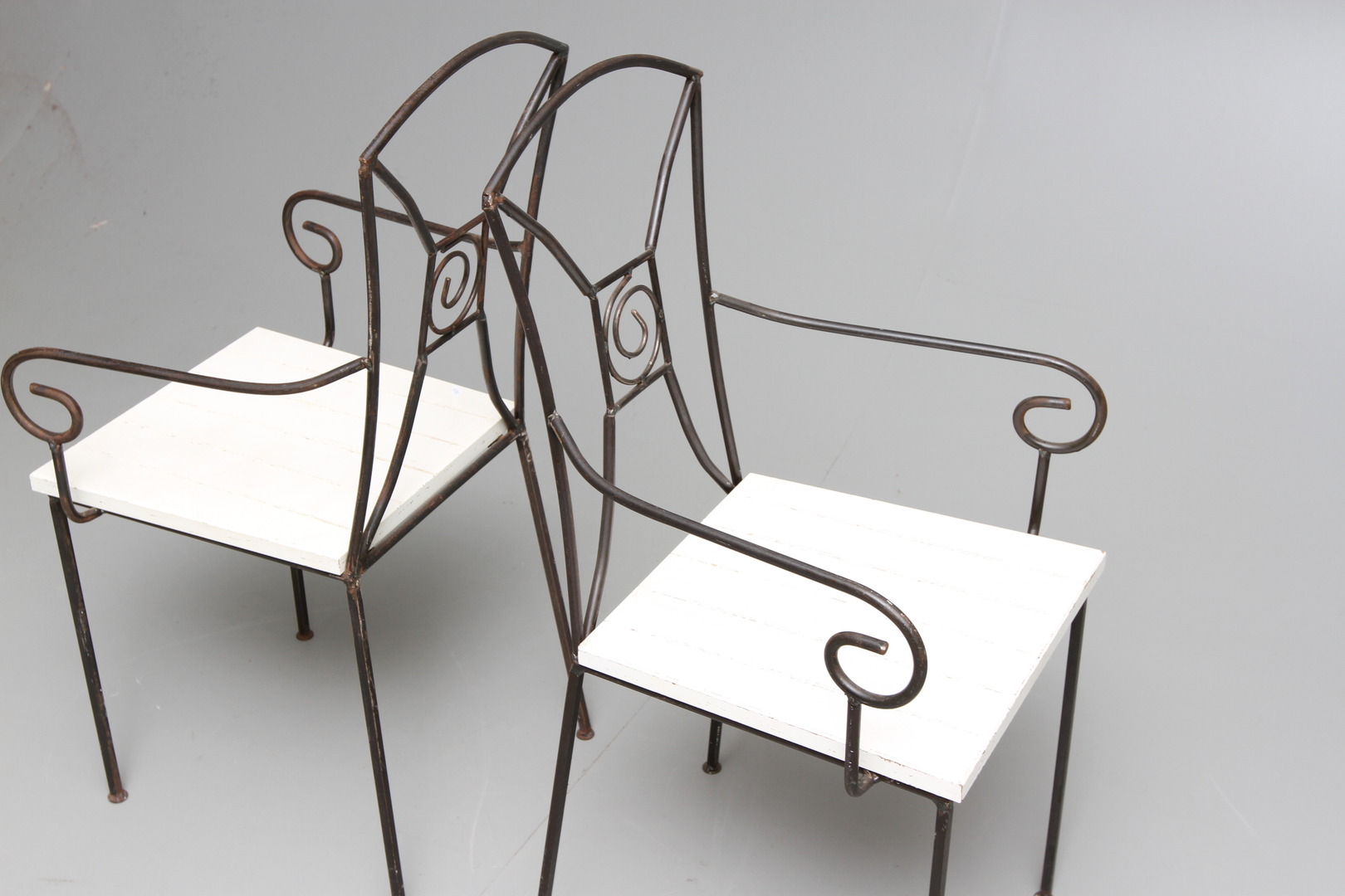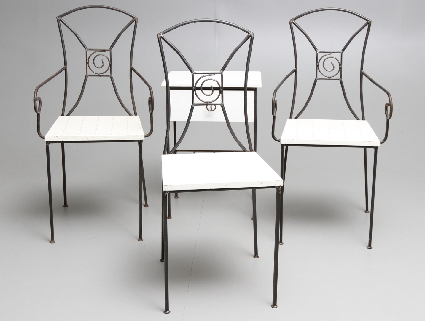 35414. SILLAS + MESA: laca blanca / forja. 1900-2000.