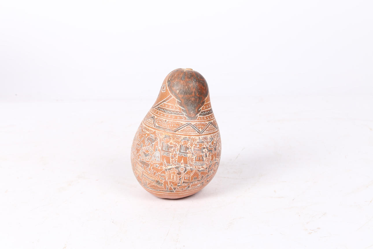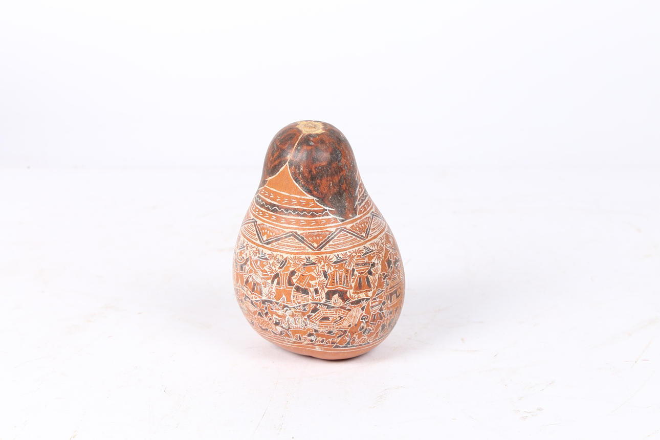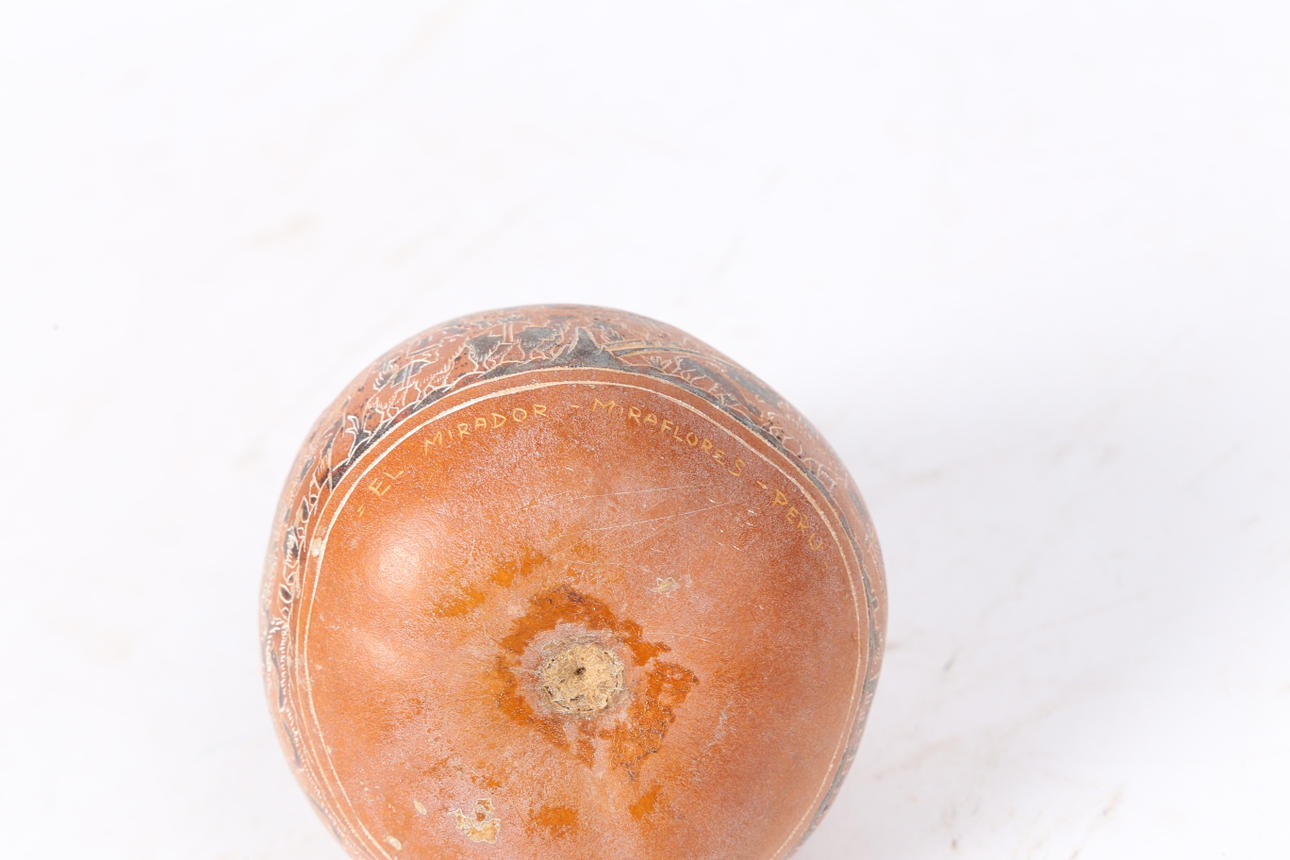 tallado con escenas figurativas y paisajísticas para incluir animales, firmado en la base «EL MIRADOR MIRAFLORES PERU», 12 cm de altura.