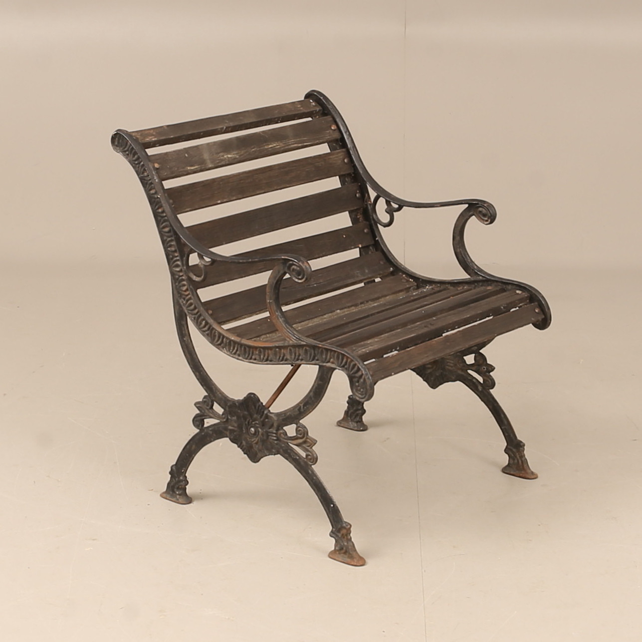 3550449. SILLÓN DE JARDÍN, madera y hierro fundido.
