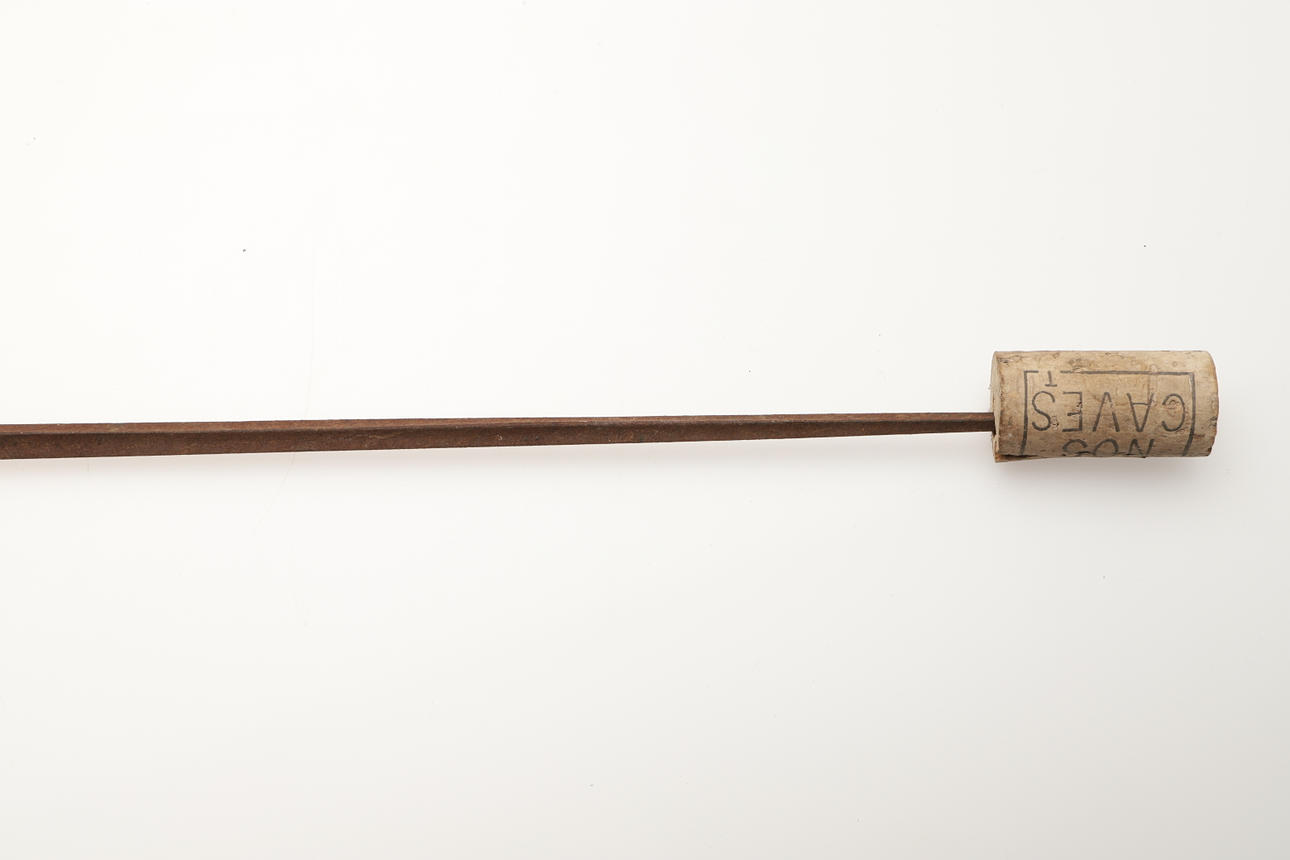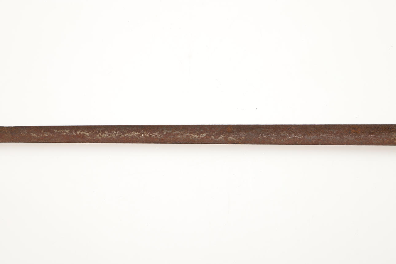 Una espada de vestir con una hoja cónica de tres filos de 80 cm. Con empuñadura montada en nácar y lazo y pomo decorativos en los nudillos. 95 cm en total.