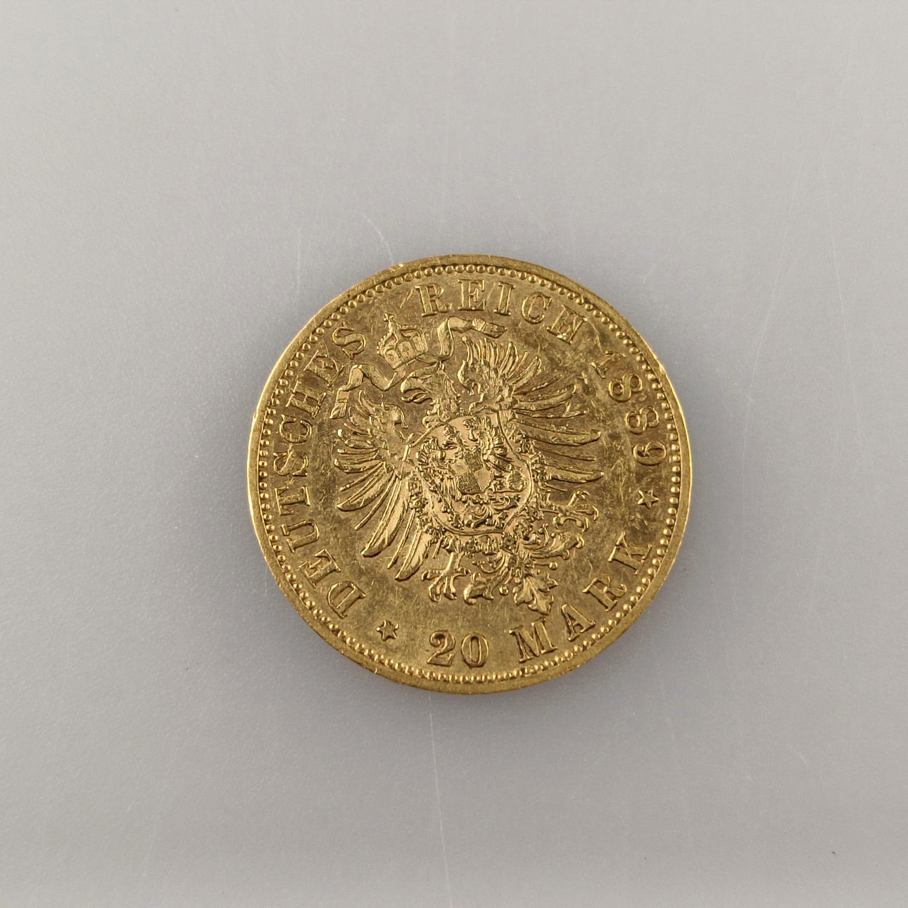 Guillermo II, emperador alemán, rey de Prusia, oro 900/000, marca en relieve A, DM. 22,5 mm, peso total aproximado 7,9 g.