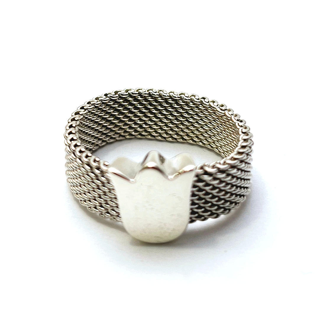 SORTIJA TOUS EN PLATA CON MALLA.