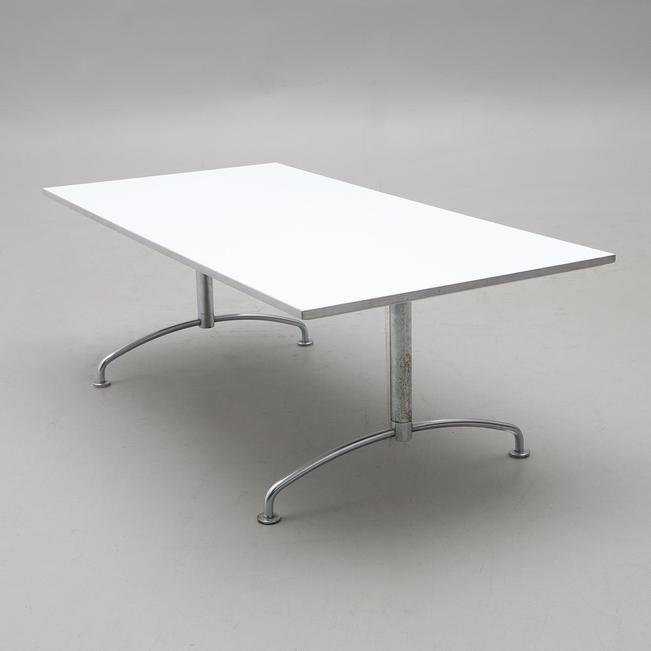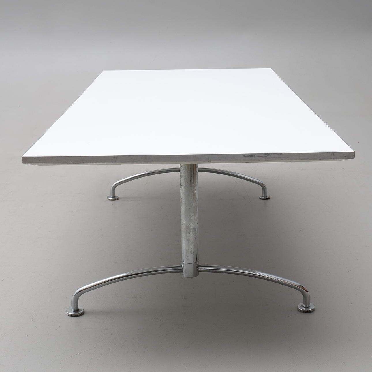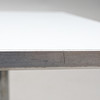 Etiquetado. Tablero rectangular de laminado blanco, bordes y chasis de acero cromado.