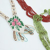 perlas de vidrio. Collar con 1920 números de longitud aprox. 50 cm. Collar verde y rojo de aproximadamente 46 cm.