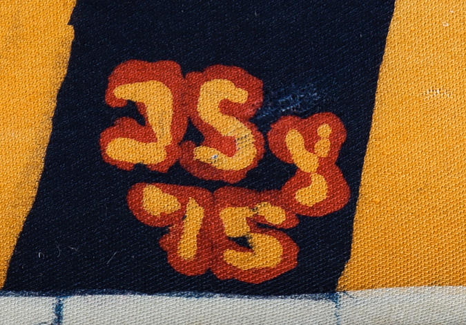 Tejido teñido en batik. Firmado y fechado -75.